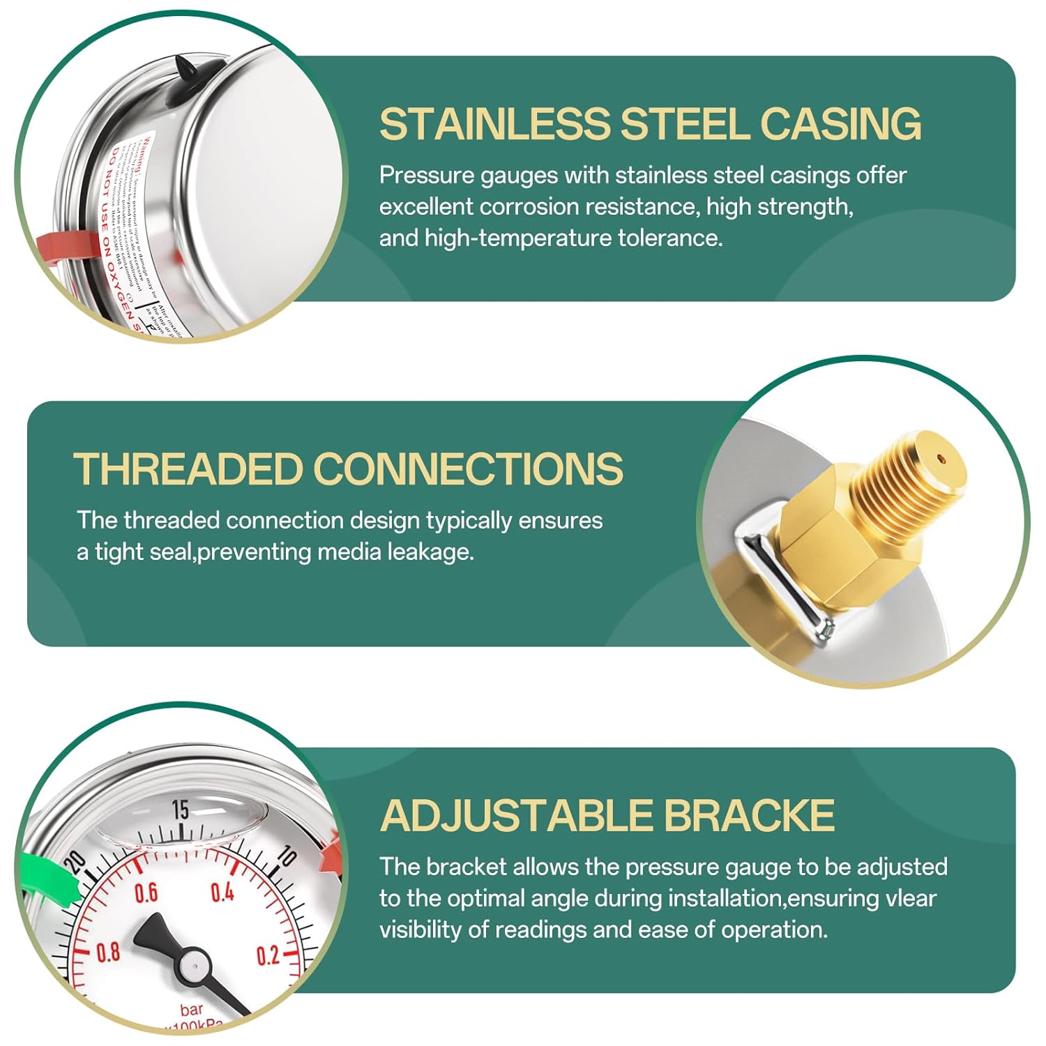 - [PRODUCT NAME] Stainless Steel Liquid Filled Pressure Gauge