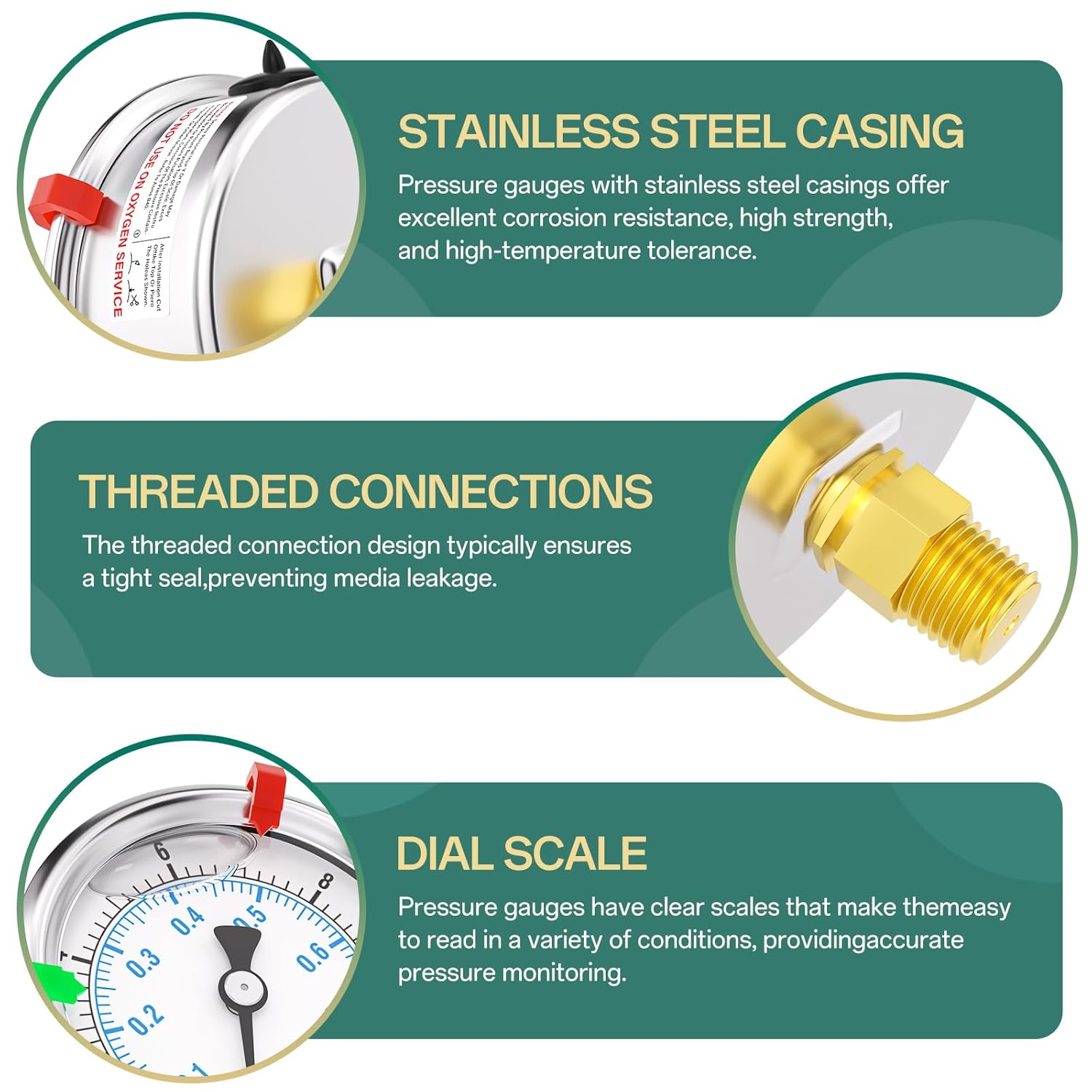 - [SIZE] 2.5" dial size, 1/4" NPT back mount