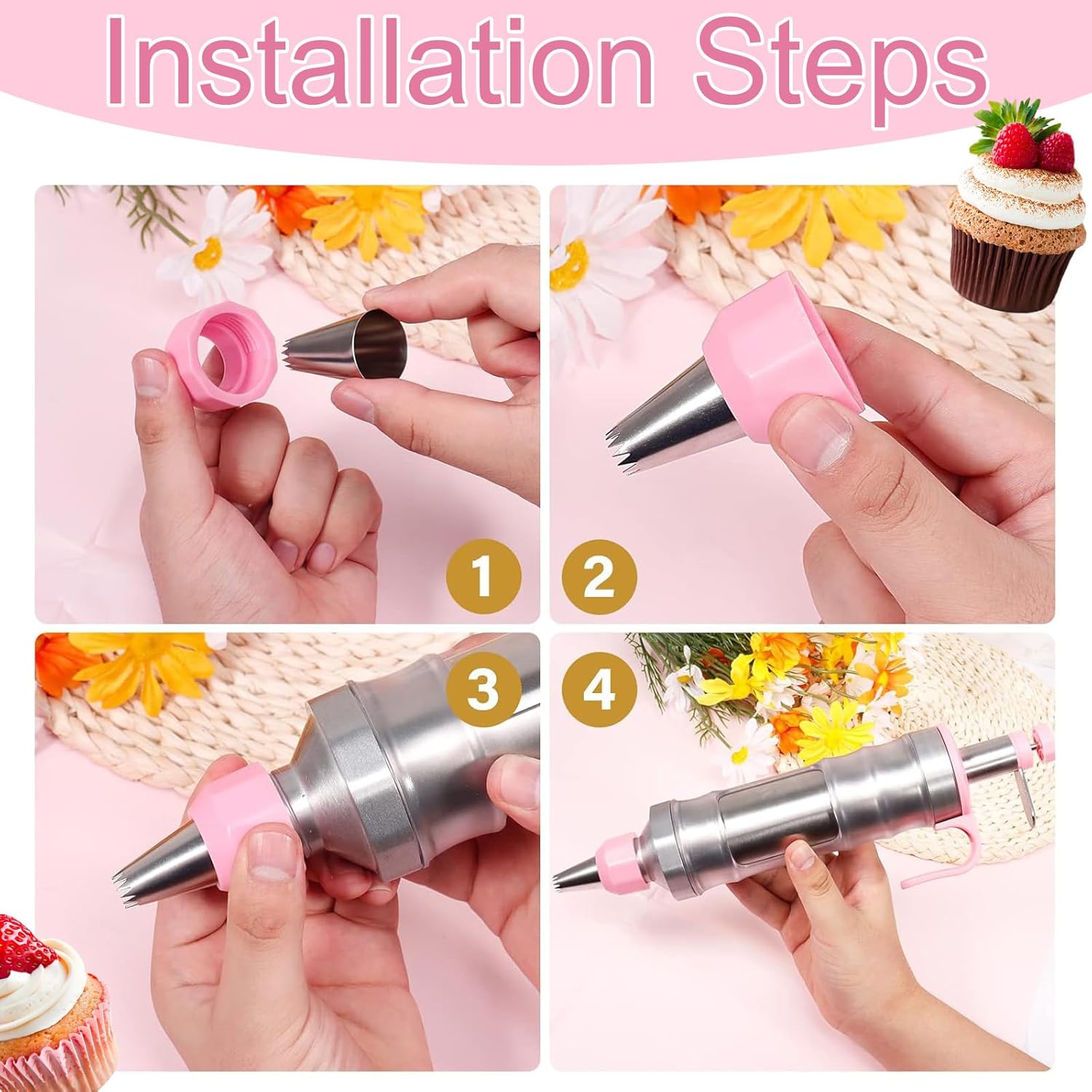 - 【User-Friendly for All Projects】 The ergonomic piping gun and lightweight icing bags make decorating cookies, bread, or desserts effortless. A top-rated cupcake piping kit for home and commercial use.