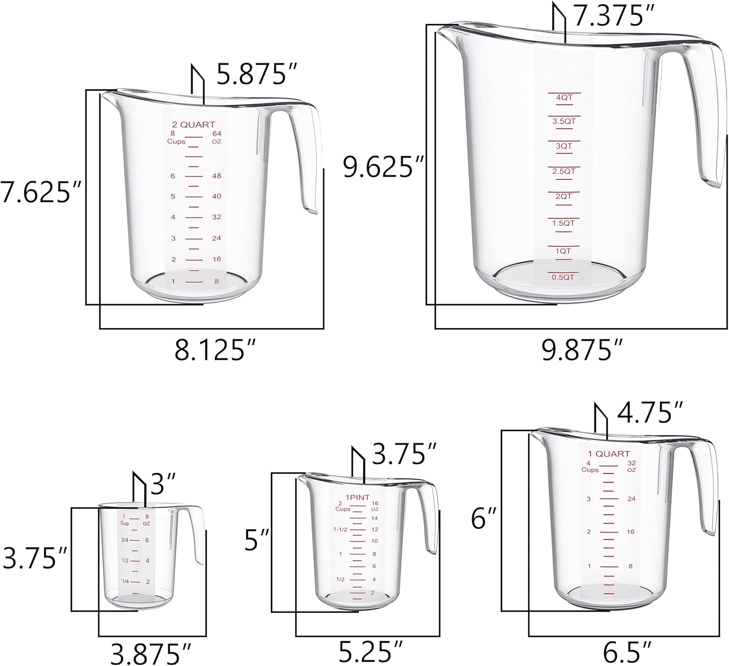 DaYammi Measuring Cups 5-Piece, Unbreakable Food-Grade Plastic Measuring Cup for Dishwasher, 1/2/4/8/16-Cup Nesting Liquid Measuring Cups for Prepping, Baking, Cooking, Readable Markings, Clear