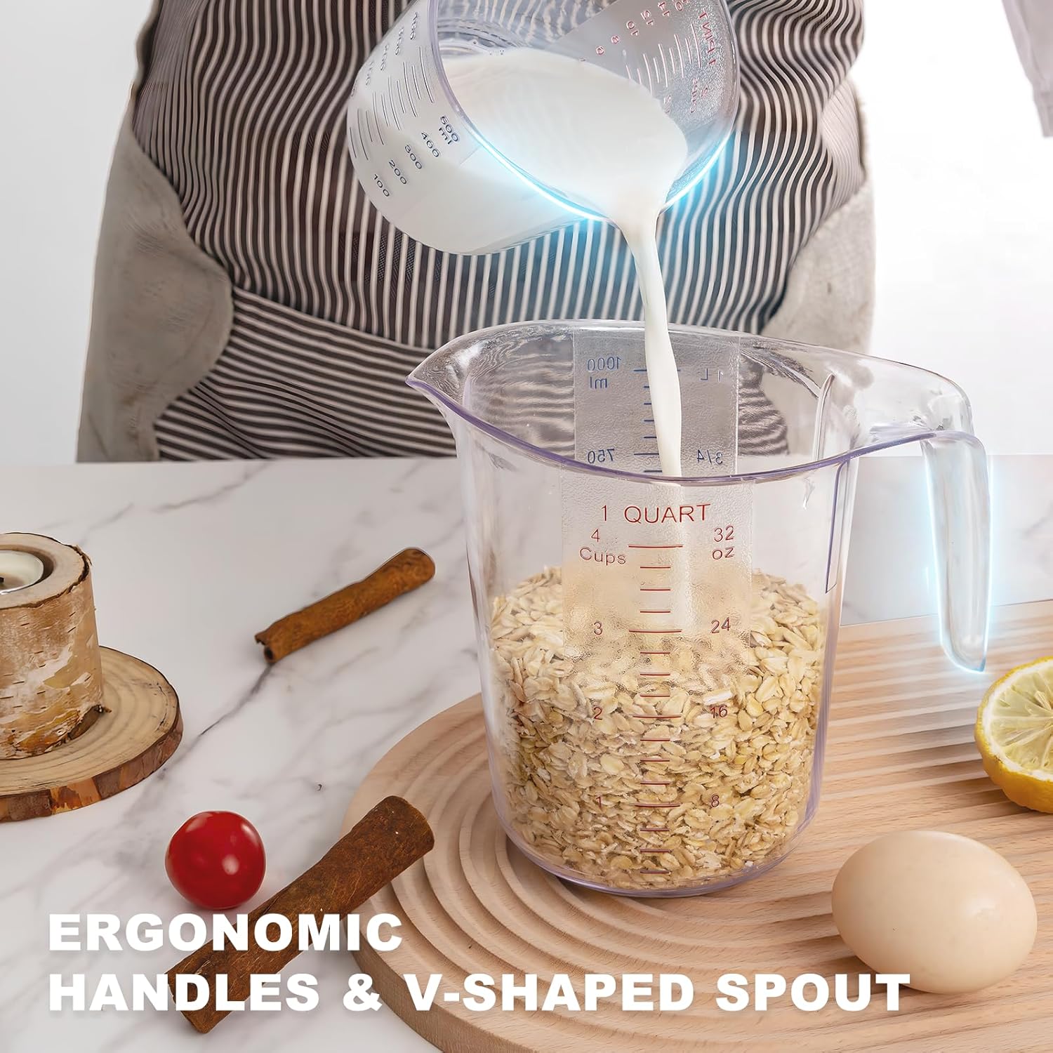- DURABLE & FOOD-SAFE MATERIAL:Our measuring cup is made from food-grade eco-friendly plastic that’s non-toxic, shatter-resistant and anti-collision. Plastic measuring cup is built to handle daily use in busy kitchens for prepping, baking, cooking. Perfect for dry and liquid ingredients