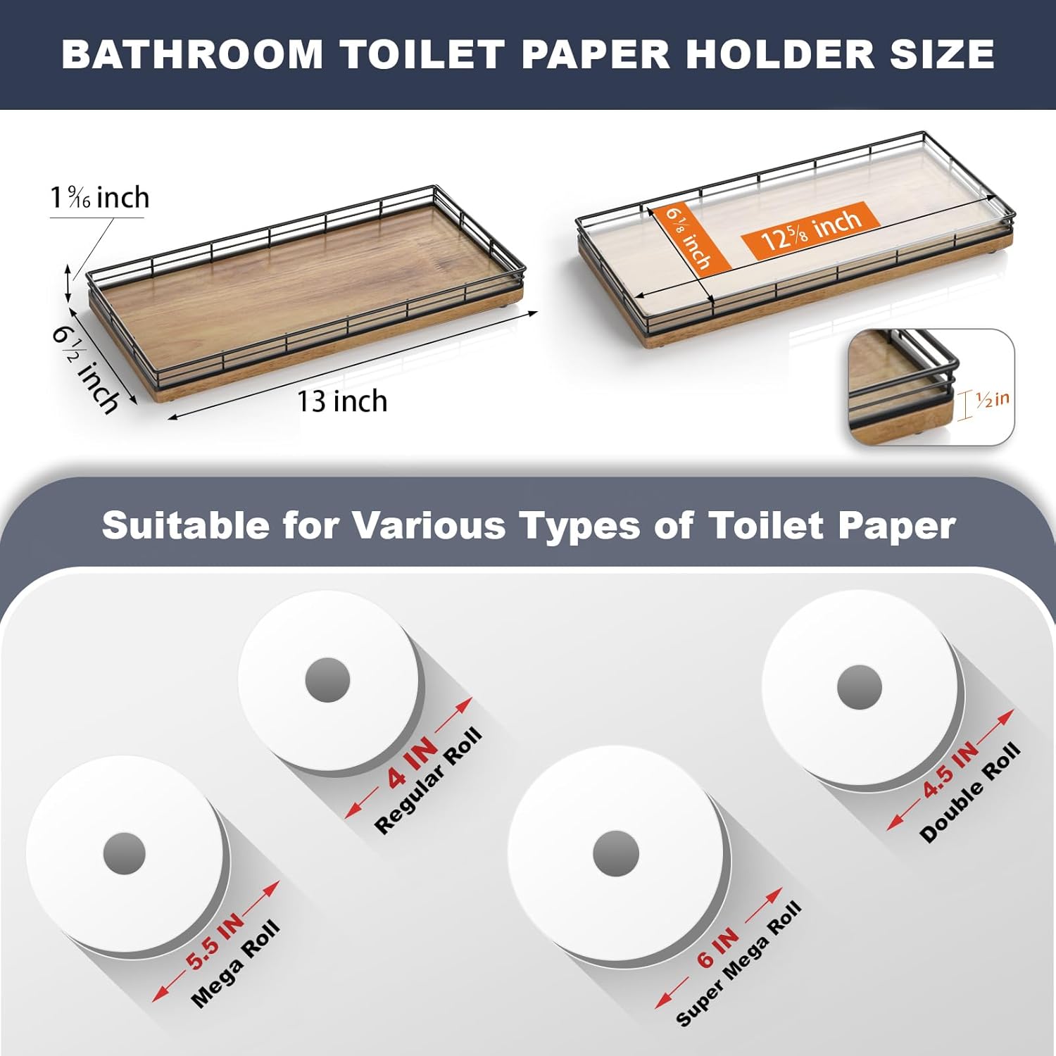- Adaptability: This wooden bathroom counter tray easily switches between roles – from a stylish toilet paper basket for your back of toilet organizer to a convenient spice organizer on your kitchen countertop; Its adaptability extends to becoming a decorative table centerpiece tray in any corner of your home