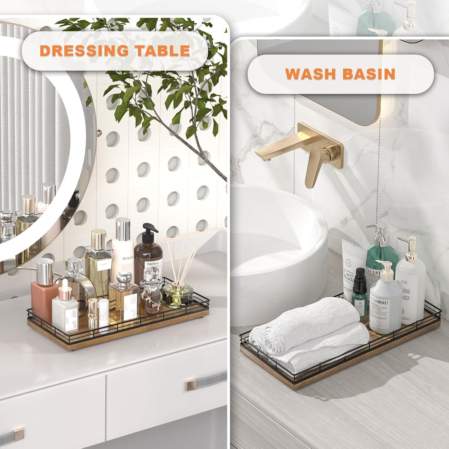 - Considerate Design: This bathroom trays for counter is ready to use without any installation required; Upgraded embedded welding design enhances stability and aesthetics; Raised edge prevent items from slipping; 4 non-slip pads on the bottom protect surfaces from scratches; Simplify your cleaning routine with just a quick wipe-down using a damp cloth, saving you time and hassle