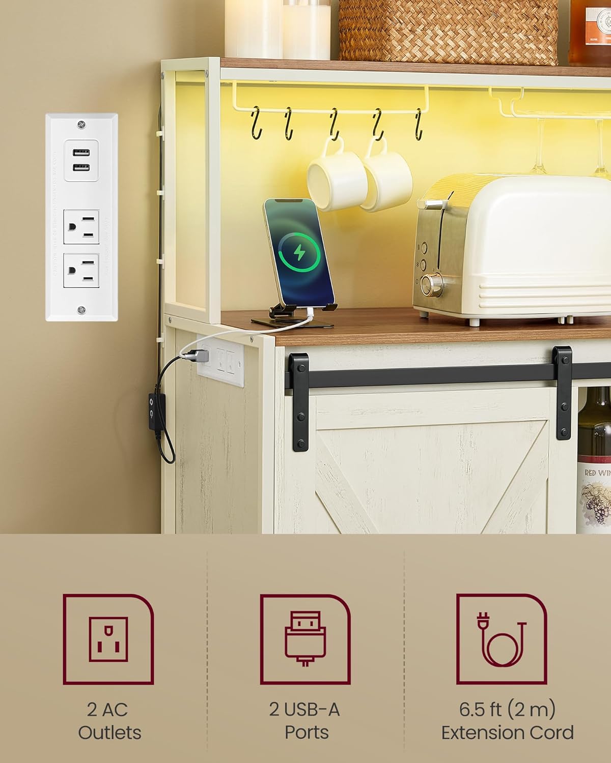- Easy Assembly: Clear instructions and labeled parts make assembly a breeze, so you can enjoy this coffee bar cabinet right away