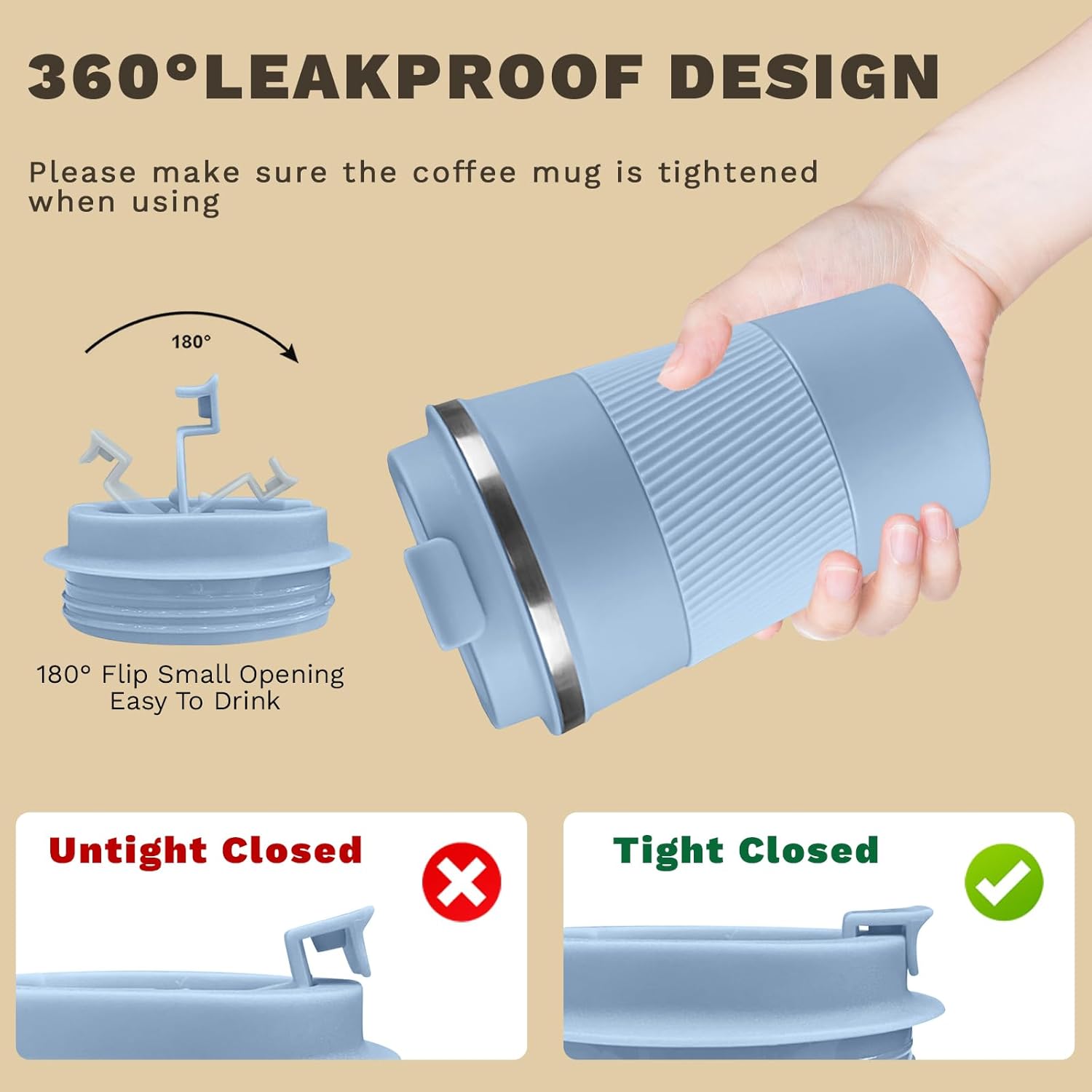 Vacuum-Insulated Stainless Steel Travel Coffee Mug, Leak-Proof Reusable Coffee Cup with Lid - Keep Hot & Cold Drinks for Hours, Durable Thermos Tumbler for Men & Women (3rd-Light Blue, 12OZ)
