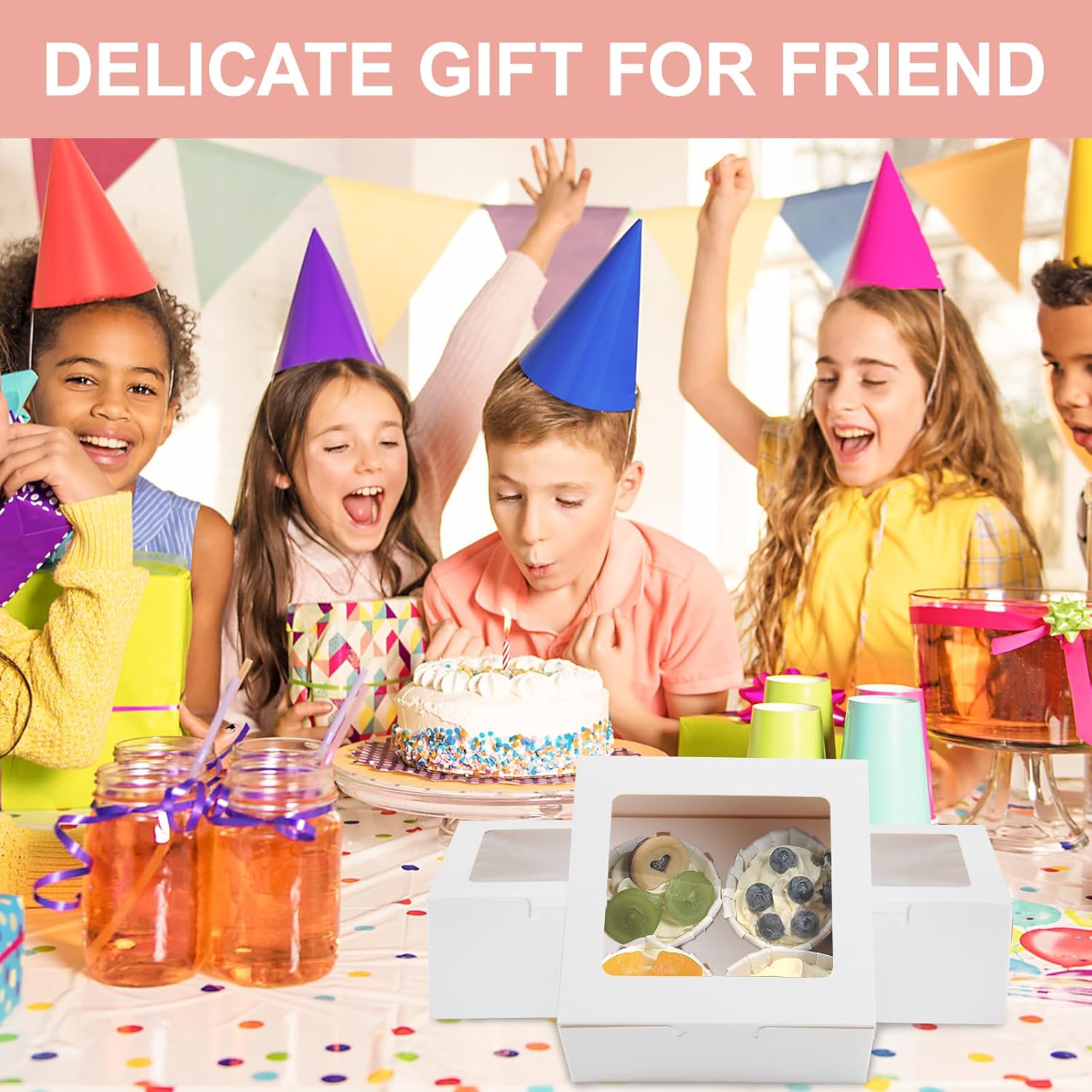 - 【Versatile Use for All Occasions】 These 4 count white cupcake boxes are perfect for cookies, cupcakes, chocolate, macarons, chocolate strawberries or mini pies. A great choice for home bakers, bakeries, catering events, or holiday treat packaging.