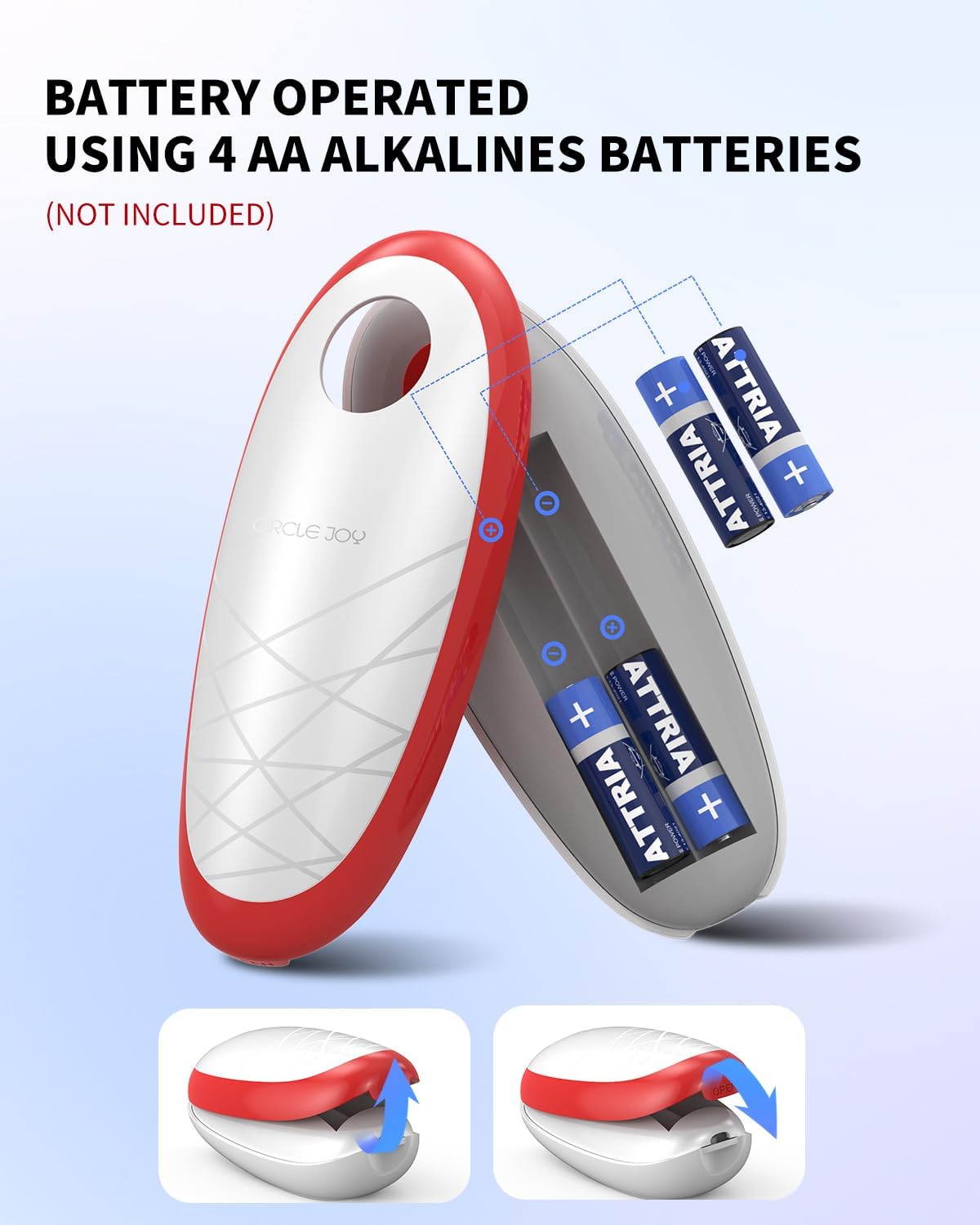 CIRCLE JOY Electric Can Opener, One-Touch Automatic Can Opening with Smooth Edges, Food Safety Handheld Battery-Operated Can Opener for Kitchen and Seniors, Red