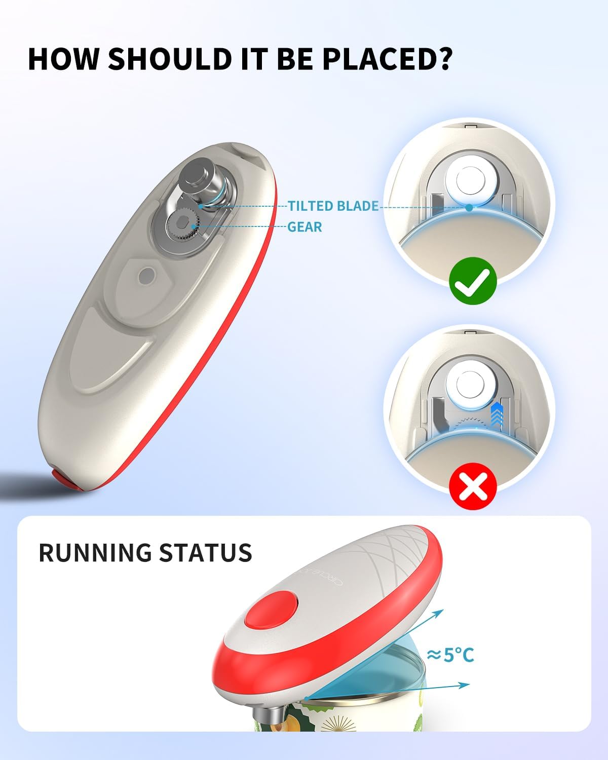- Smooth & Safe Cutting - No more jagged, dangerous lids! This automatic can opener features a side-cutting mechanism that cleanly cuts the can lid without sharp edges, preventing injuries, it is a good helper for arthritis sufferers and those with limited hand strength.