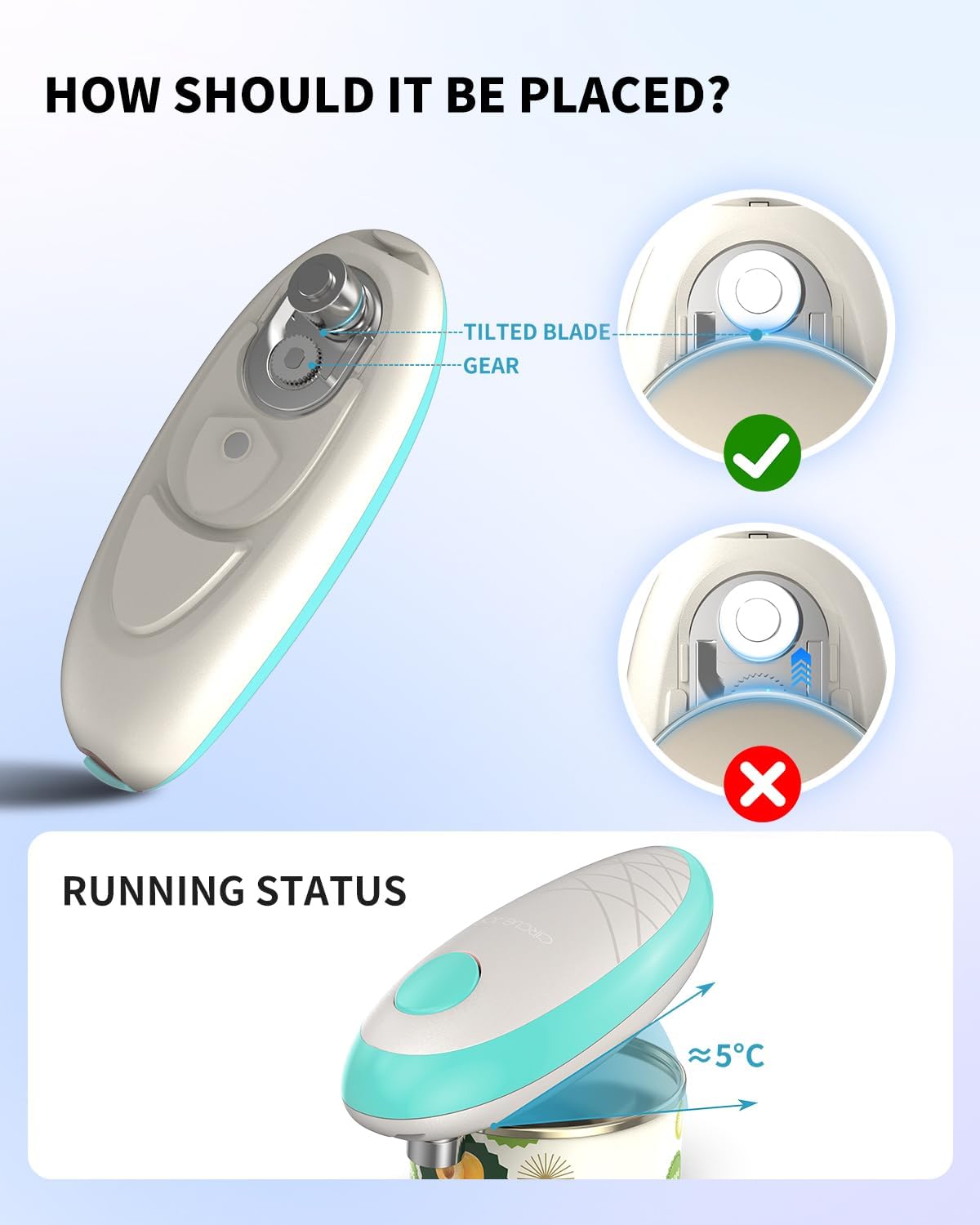 - Smooth & Safe Cutting - No more jagged, dangerous lids! This automatic can opener features a side-cutting mechanism that cleanly cuts the can lid without sharp edges, preventing injuries, it is a good helper for arthritis sufferers and those with limited hand strength.