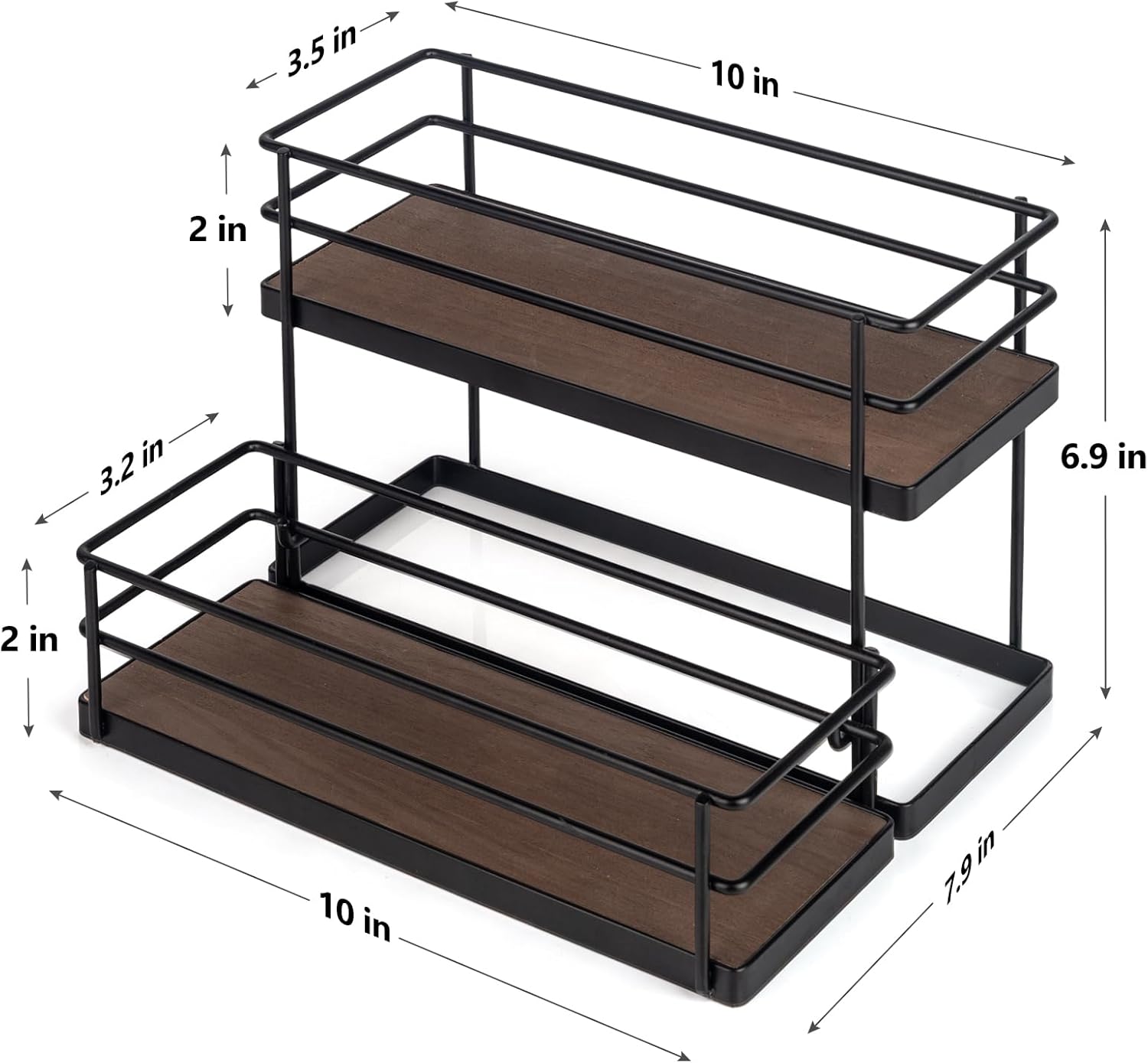 - ·【Space-Saving Countertop Design】✨- With compact dimensions of 10.24"L x 7.8"W x 6.89"H, this freestanding rack maximizes your limited counter space while keeping bottles organized and labels visible at a glance.
