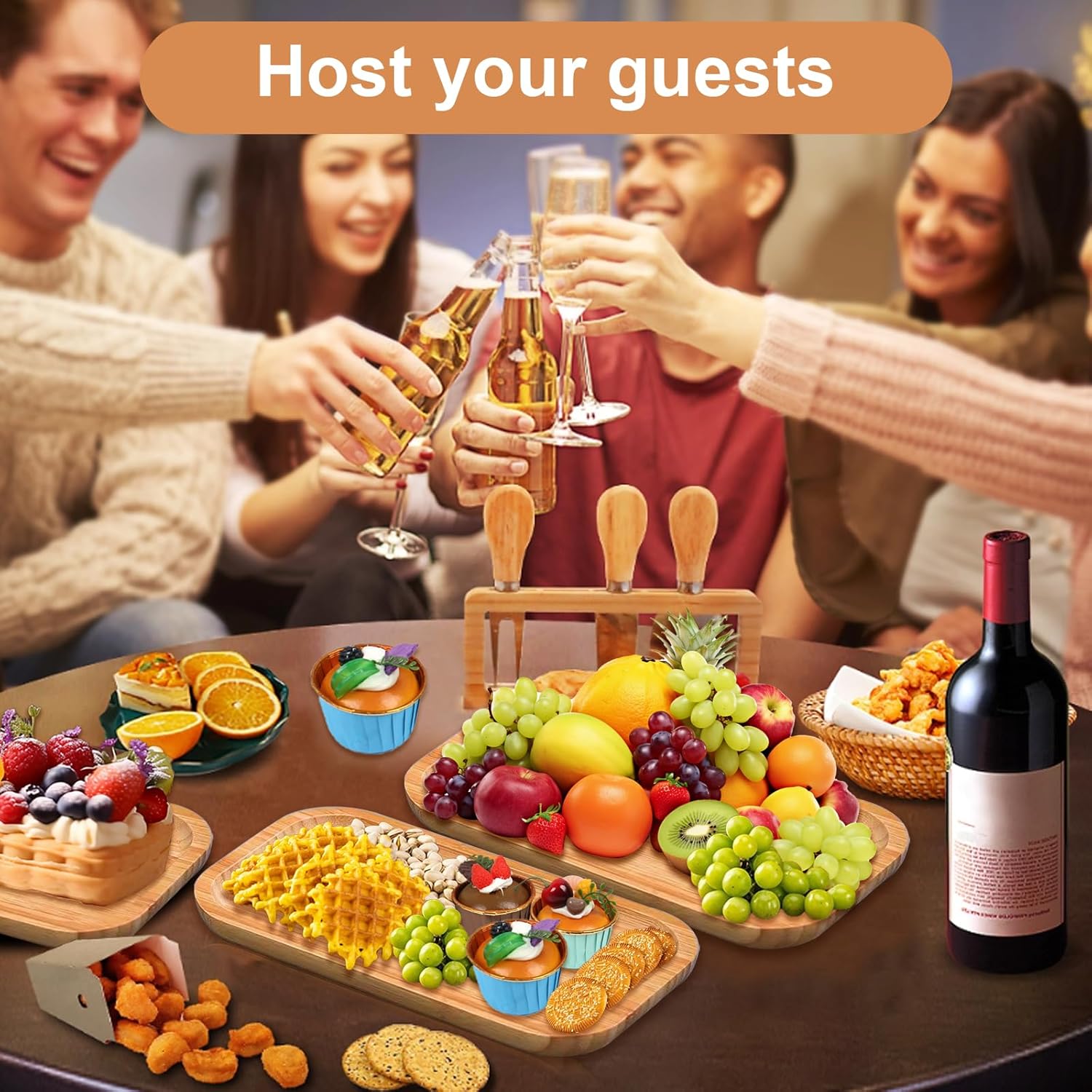 - Easy to Store: Each bamboo tray is 0.59 inches /1.5 cm thick and can be neatly stacked in a kitchen or storage cabinet corner when not in use, saving space and keeping things tidy.