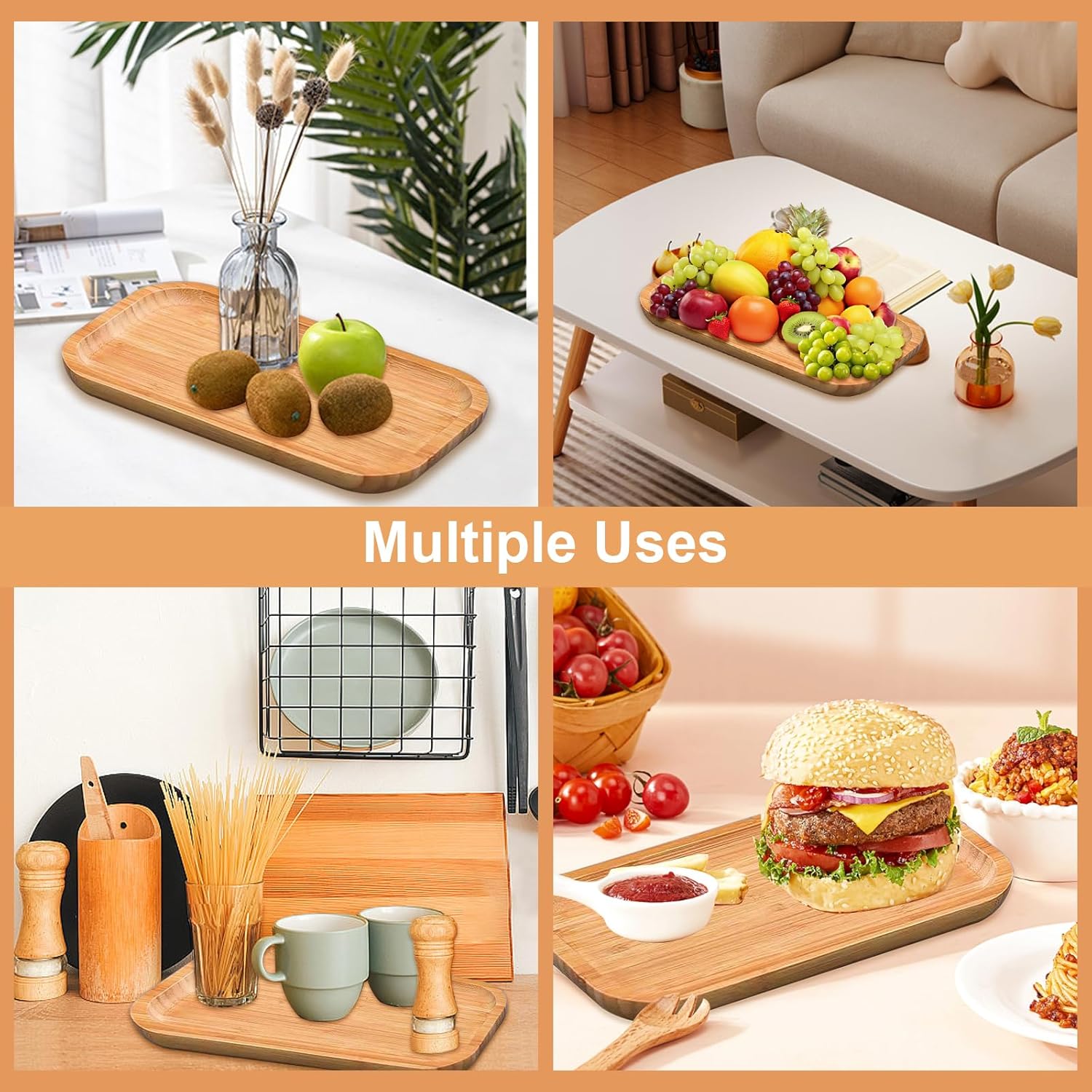 2 Pack Bamboo Trays Cheese Plate,10 Inch Rectangular Food Serving Saucer Wood Platte for Serving Food for Charcuterie Tea Coffee Snack Bread Fruit Appetizer Plant Pot