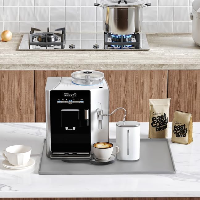Silicone Coffee Mat with Raised Edges, 20'' x 15'', Bar Countertops, Accessories Fit Under Coffee Maker Espresso Machine, Dish Drying Mat, Baking Mat (Gray)