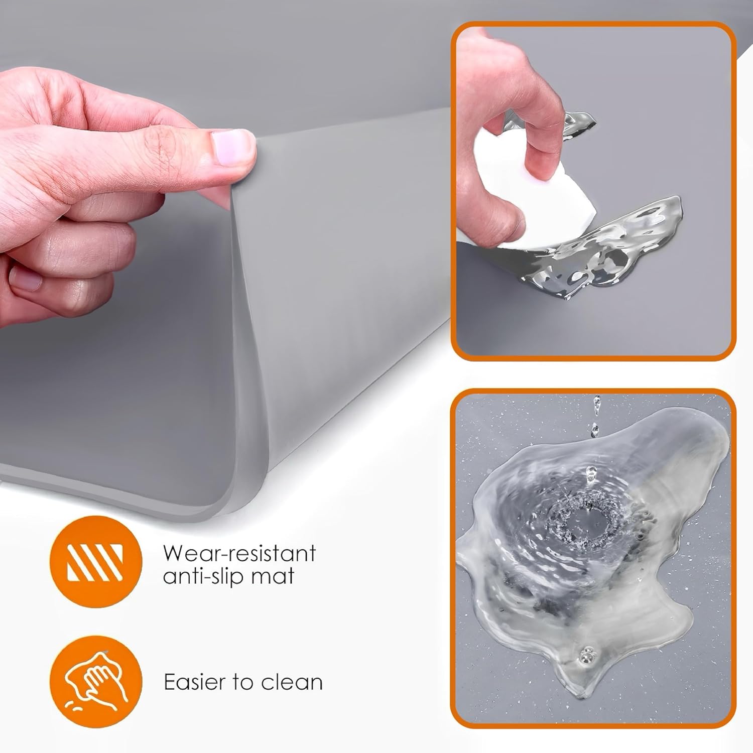 - 【Premium Anti-Slip Silicone Material】The coffee mat is made of high-quality silicone material, which is soft and comfortable, has strong durability and long-lasting ability, easy to clean. Non-slip rubber backing to securely keep it in place.