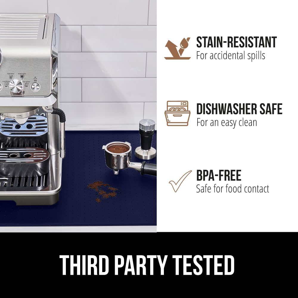 GORILLA GRIP Silicone Coffee Mat, Espresso Drink Bar Station Accessories, Waterproof Heat-Resistant Dish Drying Mats, Stay in Place on Kitchen Counter, Home Kitchen Decor Essentials, 10x14, Navy