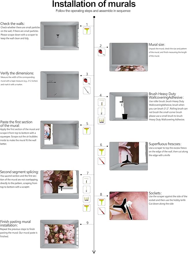 - Warm tip: This mural is not peel and stick, you need to buy your own glue, it is recommended to use Heavy Duty Wallcovering Adhesive.