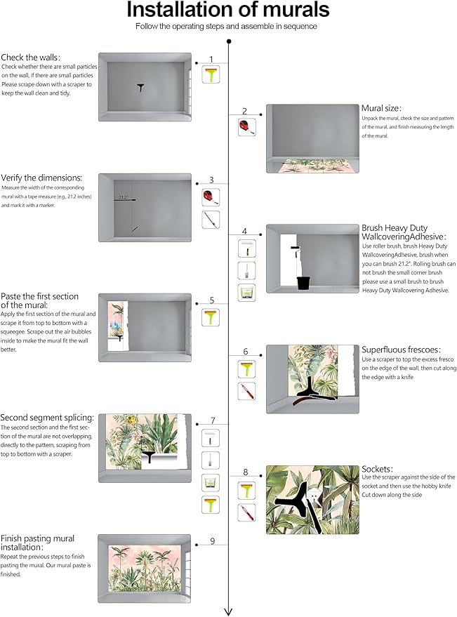 - Warm tip: This mural is not peel and stick, you need to buy your own glue, it is recommended to use Heavy Duty Wallcovering Adhesive.