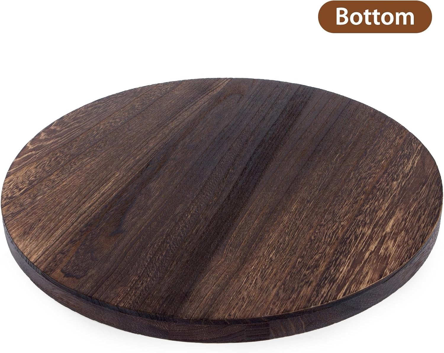 Round Ottoman Tray for Coffee Table Living Room Wood Serving Tray Large Wooden 20 Inches Rustic Brown