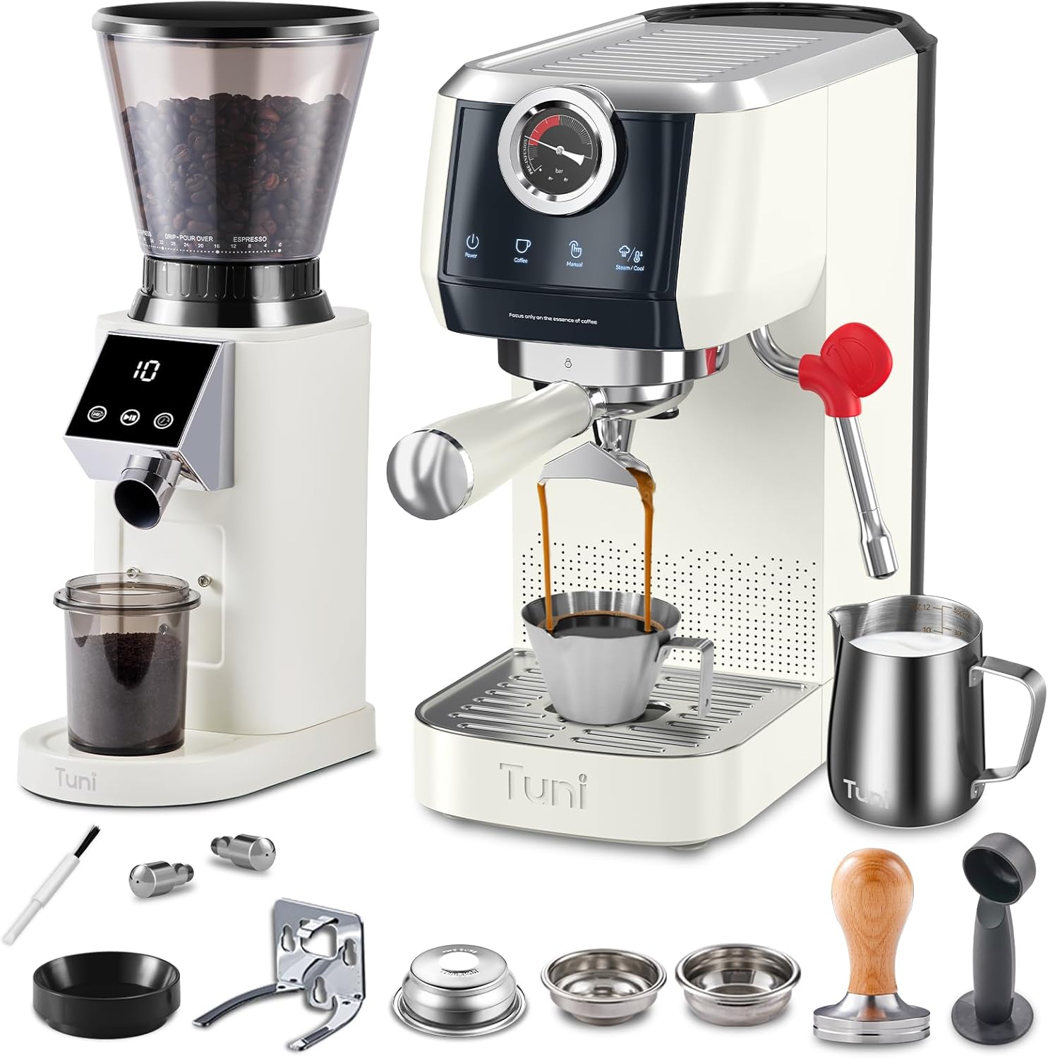 Tuni E2 ๐ฌ๐๐๐๐๐๐๐ ๐ด๐๐๐๐๐๐ with G1 ๐ช๐๐๐๐๐๐ ๐ช๐๐๐๐๐ ๐ฎ๐๐๐๐ ๐๐ Combo Set | 20Bar Dual Boiler Coffee Maker | 48 Grind Settings | Professional Home Barista Kit