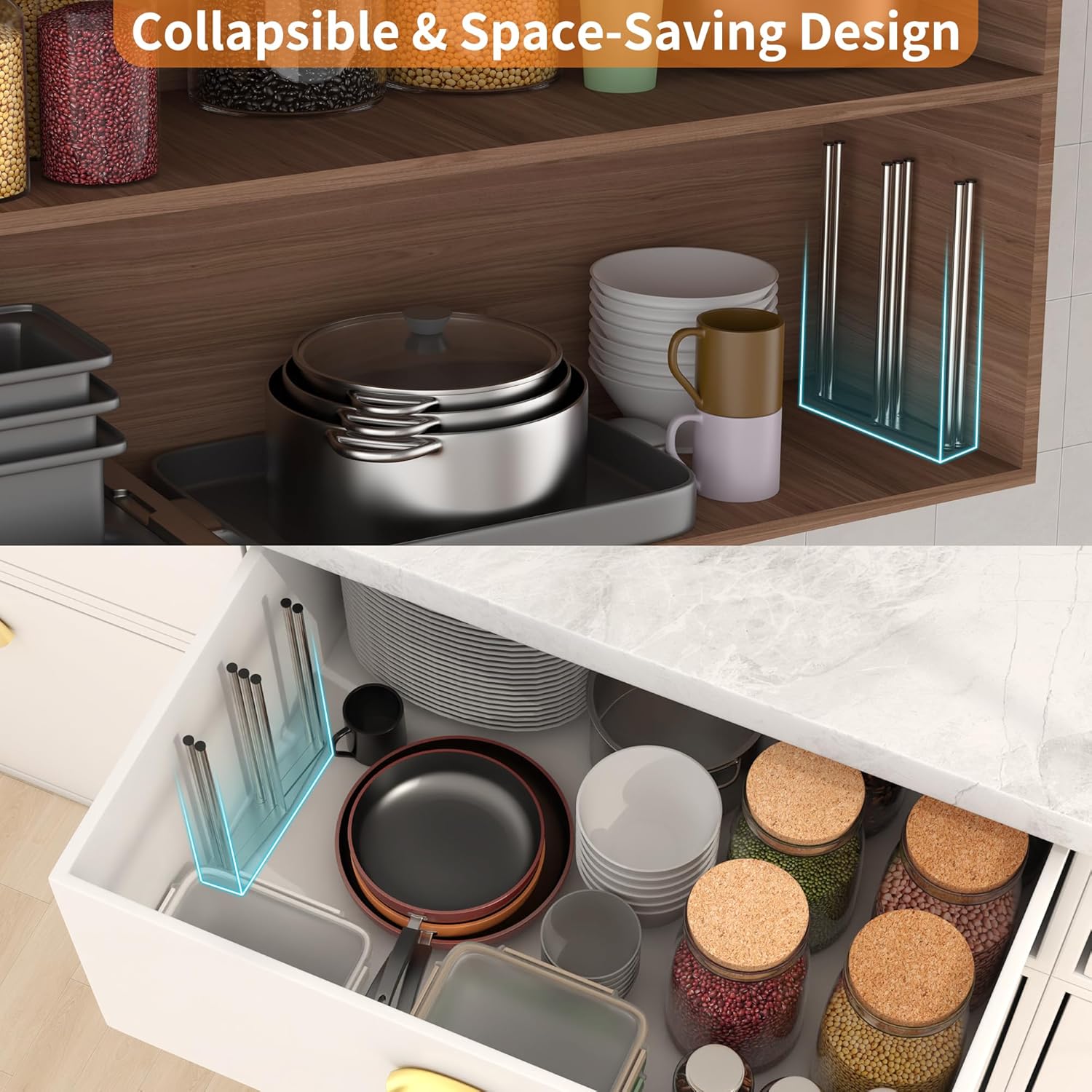 - 【Collapsible & Space-Saving Design】 Effortlessly unfolds for use and folds flat for easy storage, making it perfect for maximizing kitchen space. Its compact footprint fits neatly under cabinets, keeping countertops clutter-free.