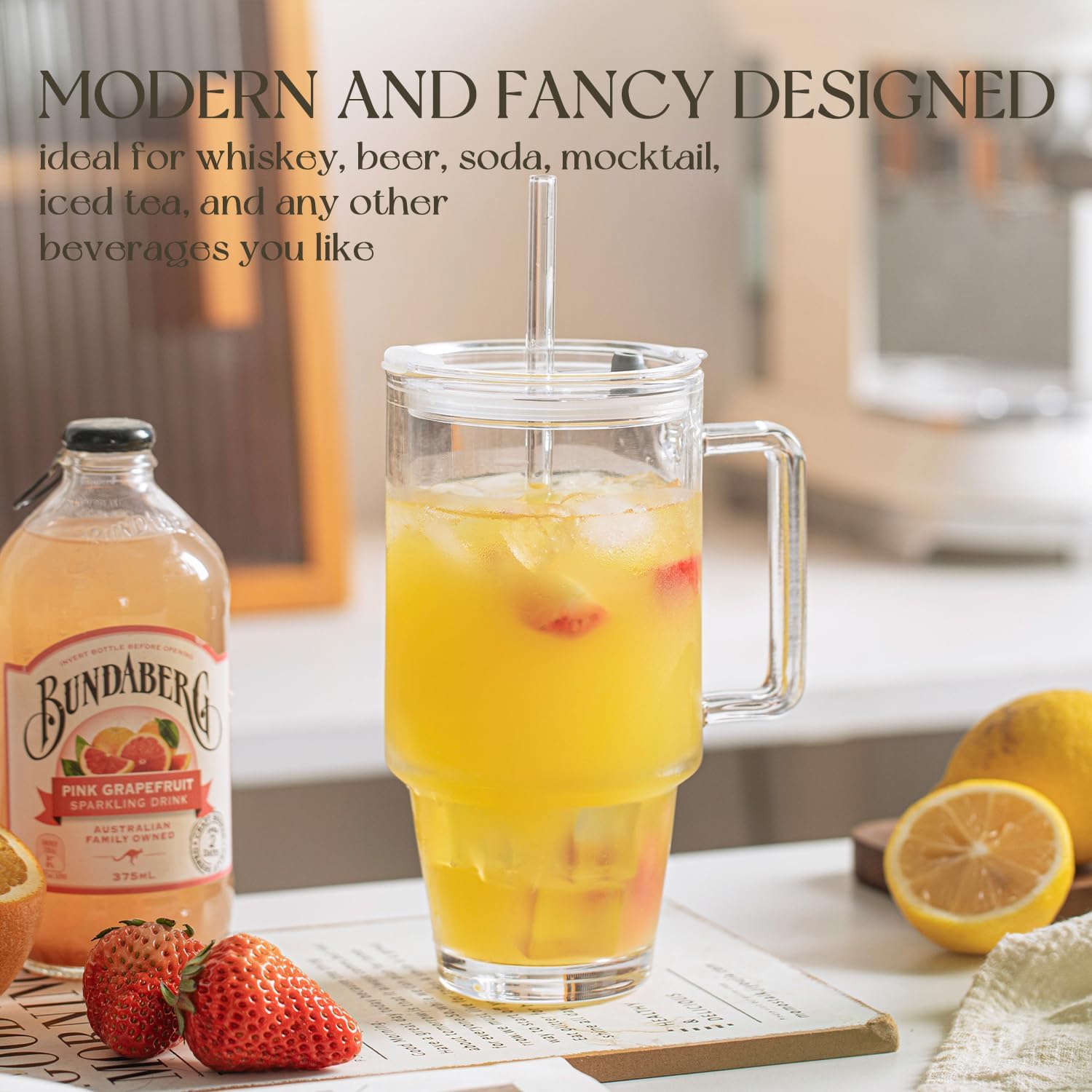 KEMORELA 24oz Glass Tumbler with Handle & Lid - Reusable Glass Cup with Straw for Iced Coffee, Smoothie & Water - Clear Drinking Glasses, To-Go Travel Drinkware (1)
