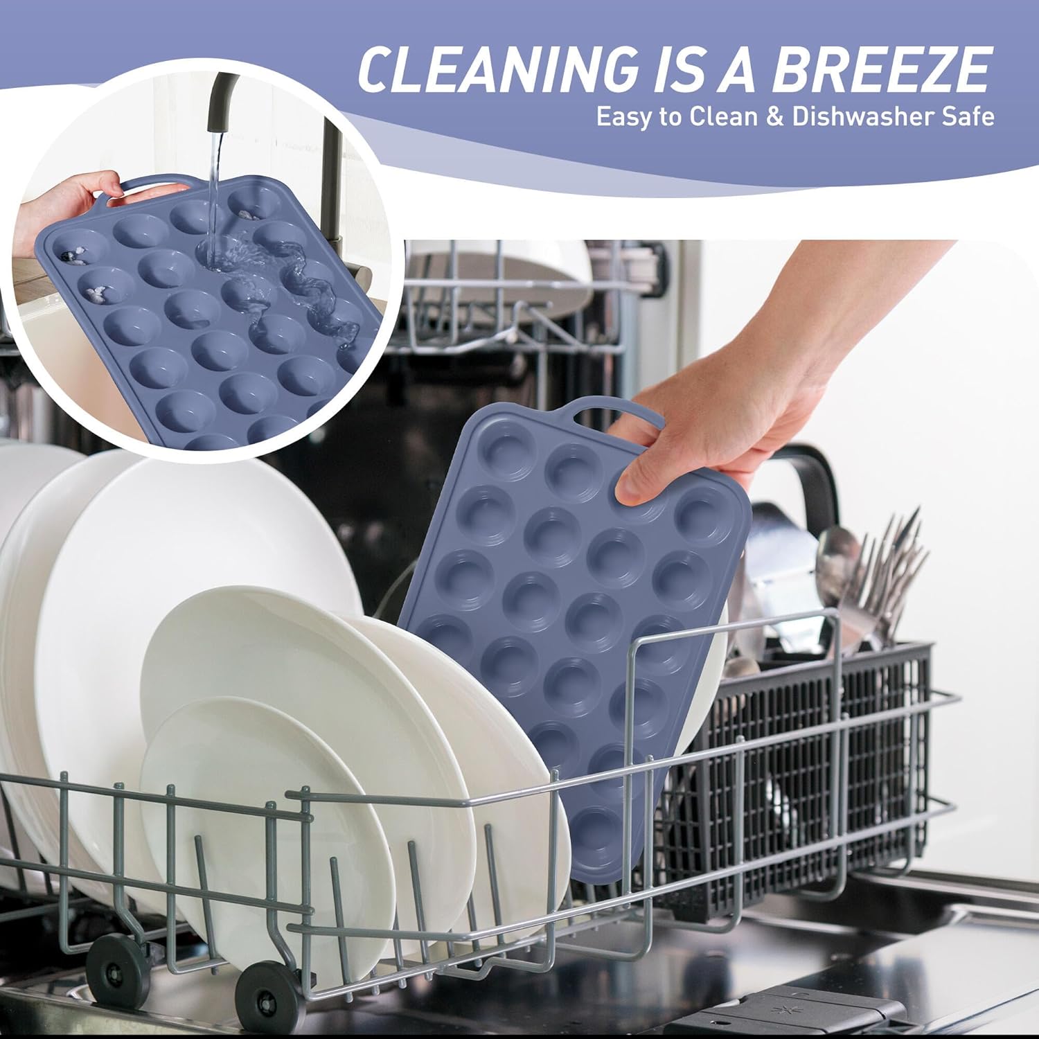 - 【Food Grade Silicone Muffin Tray】Safe for the oven, microwave, dishwasher, fridge, and freezer. With an impressive heat resistance range from -104°F to 446°F, it’s perfect for all your favorite baked goods. Oven-safe handles withstand repeated baking cycles without cracking, unlike cheaper silicone baking cupcake muffin pan with plastic components. Food grade silicone of our muffin pan with anti fouling and anti staining properties, tested over 1000 times and still maintains 99% freshness.