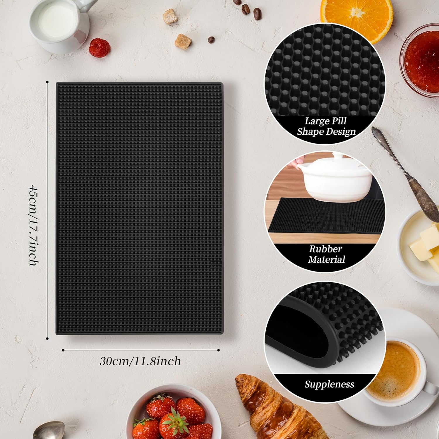 - Widely Used: Our non slip rubber service mat is apply to bars, restaurants, homes, coffee shops and other places, for cocktails, coffee and beverages