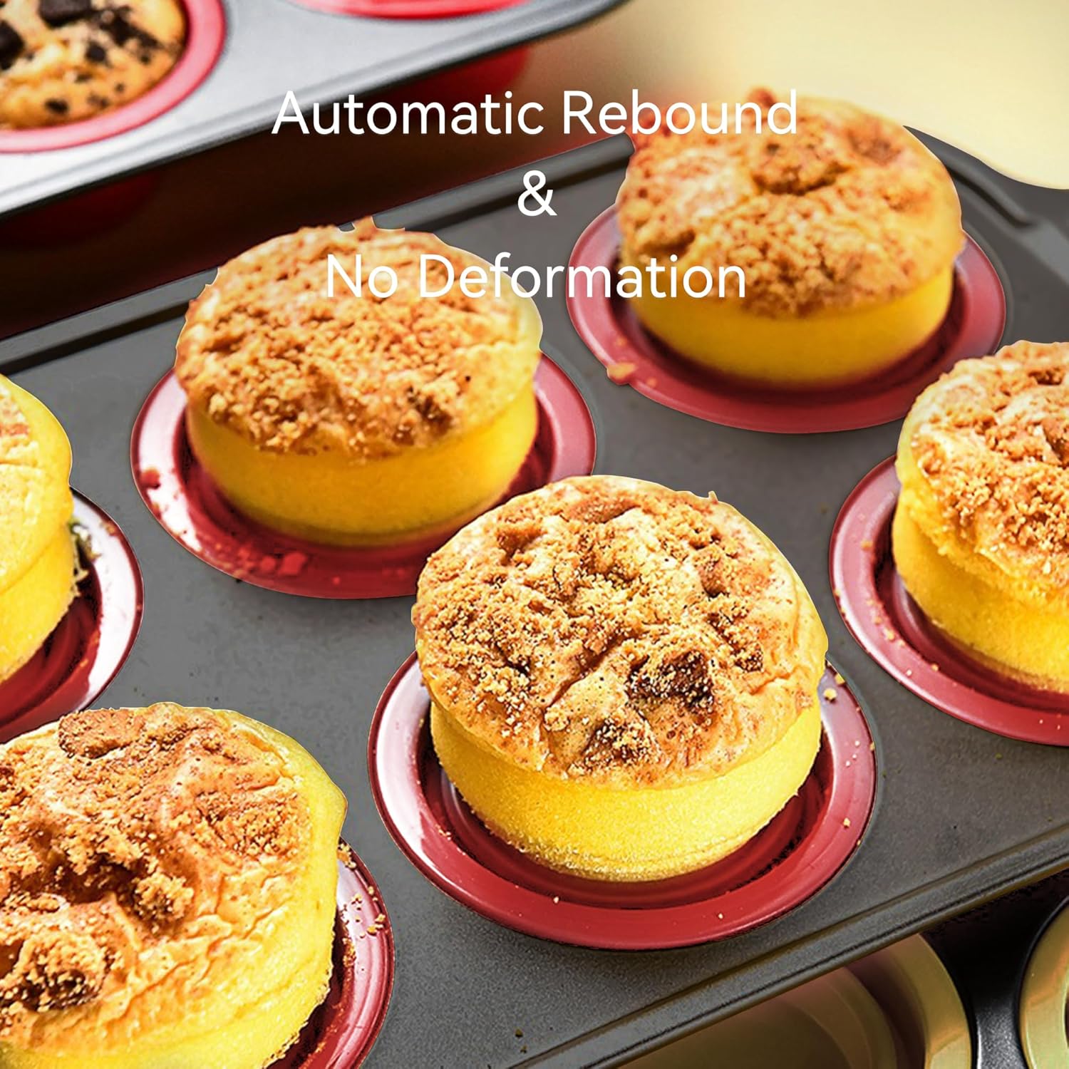 - Press-to-Release, Effortless Baking: Enjoy mess-free baking with our press-to-release design. Simply press down on the sides of the silicone pan for quick and easy release—no sticking, no tearing. Made from premium food-grade silicone and reinforced with durable carbon steel for added strength.