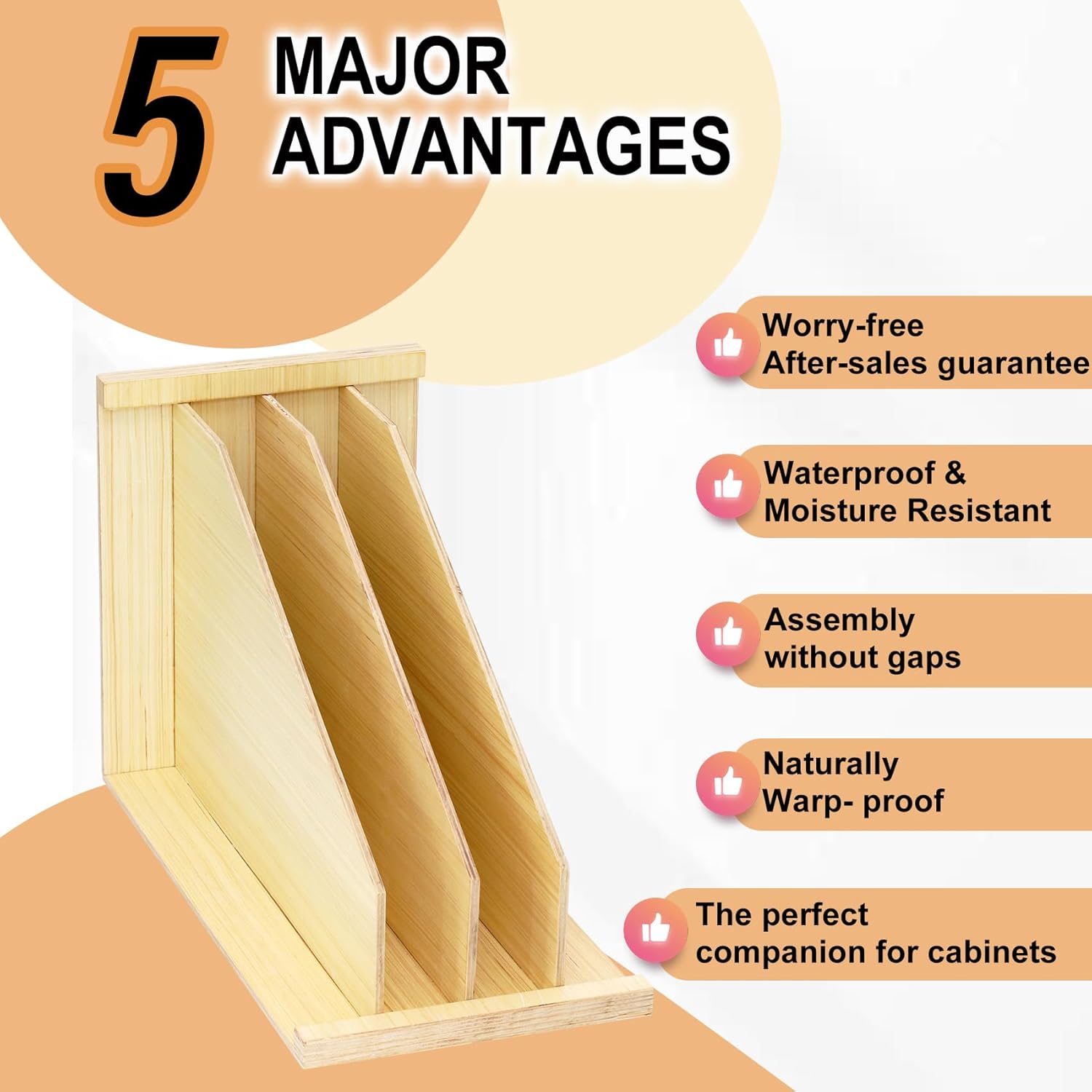 Tray Dividers for Cabinets-15"H x 22"D x 12"W,Wooden Vertical Organizer for Cookie Sheets,Pans&Lids#Kitchen Cabinet Divider with 3 Adjustable Sections,Easy Install with Installation Drawings Included