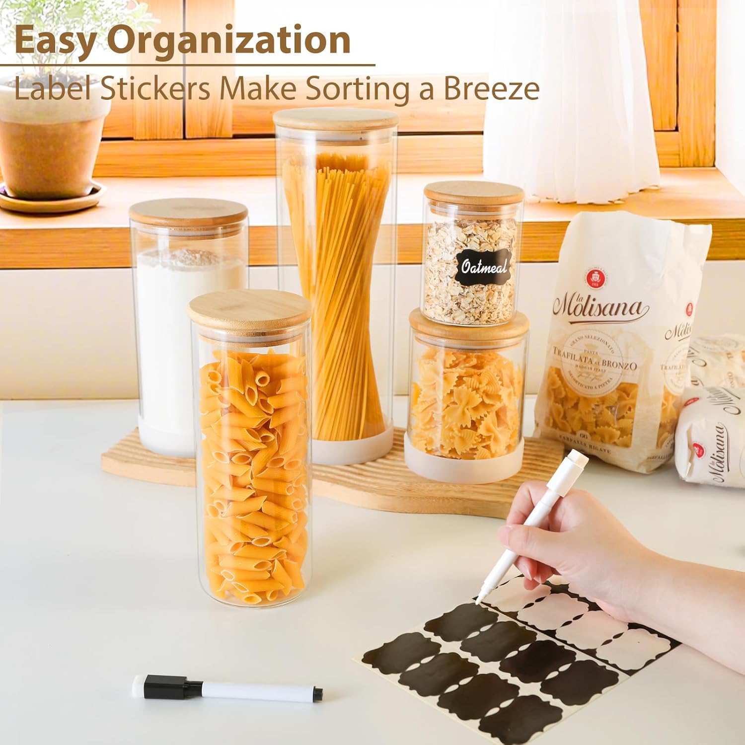 - Medium Capacity & Clear Visibility – Each jar holds 34oz (≈1L), perfect for storing flour, pasta, rice, coffee beans, cookies, and everyday pantry staples. The crystal-clear glass lets you easily see contents at a glance, keeping your kitchen tidy and well-organized.