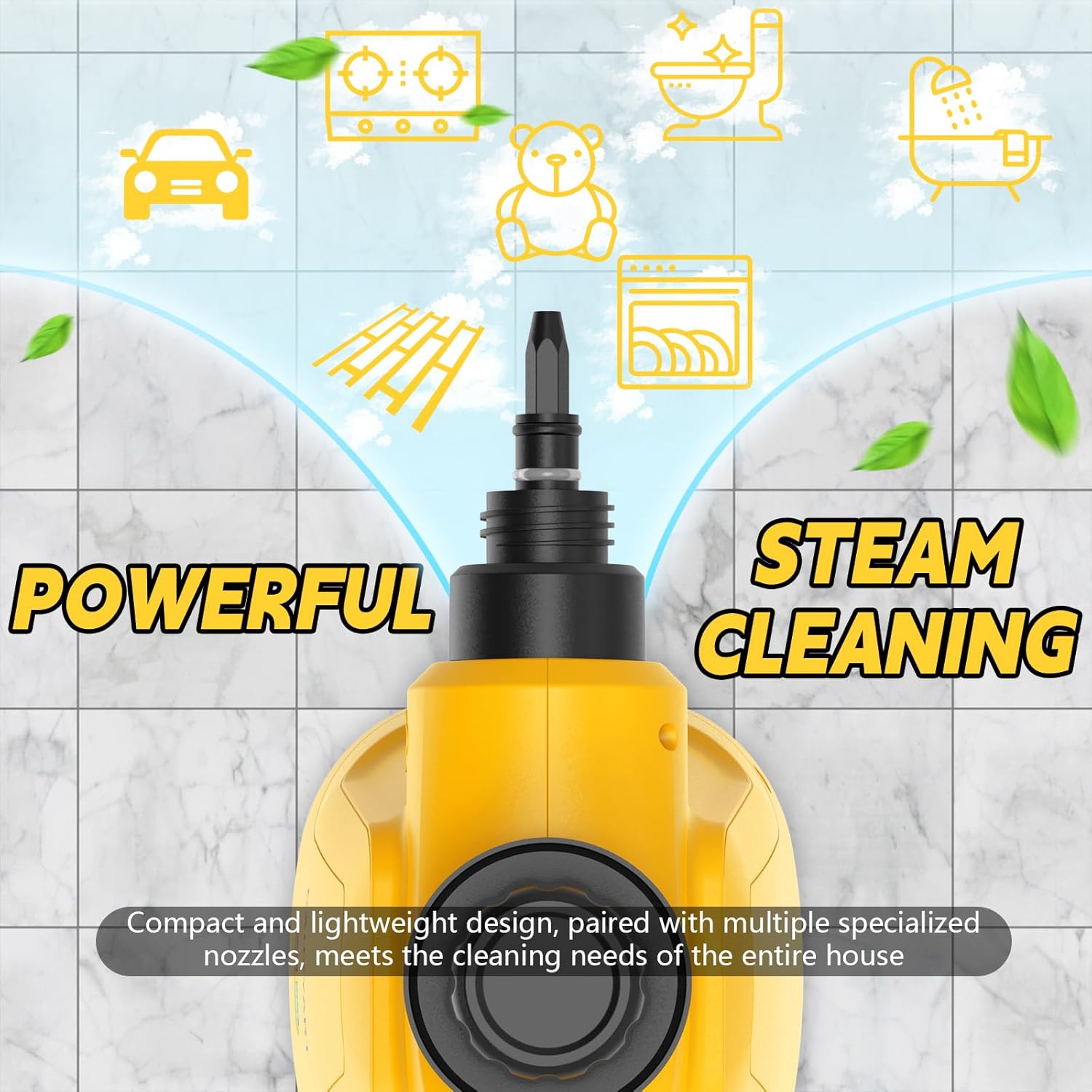 - Compact & Convenient: With its compact handheld design, you can easily take this portable steam cleaner anywhere. The 9.8 ft power cord ensures efficient operation, and you can easily carry steamer cleaner wherever you clean, whether it's room to room or up and down the stairs.