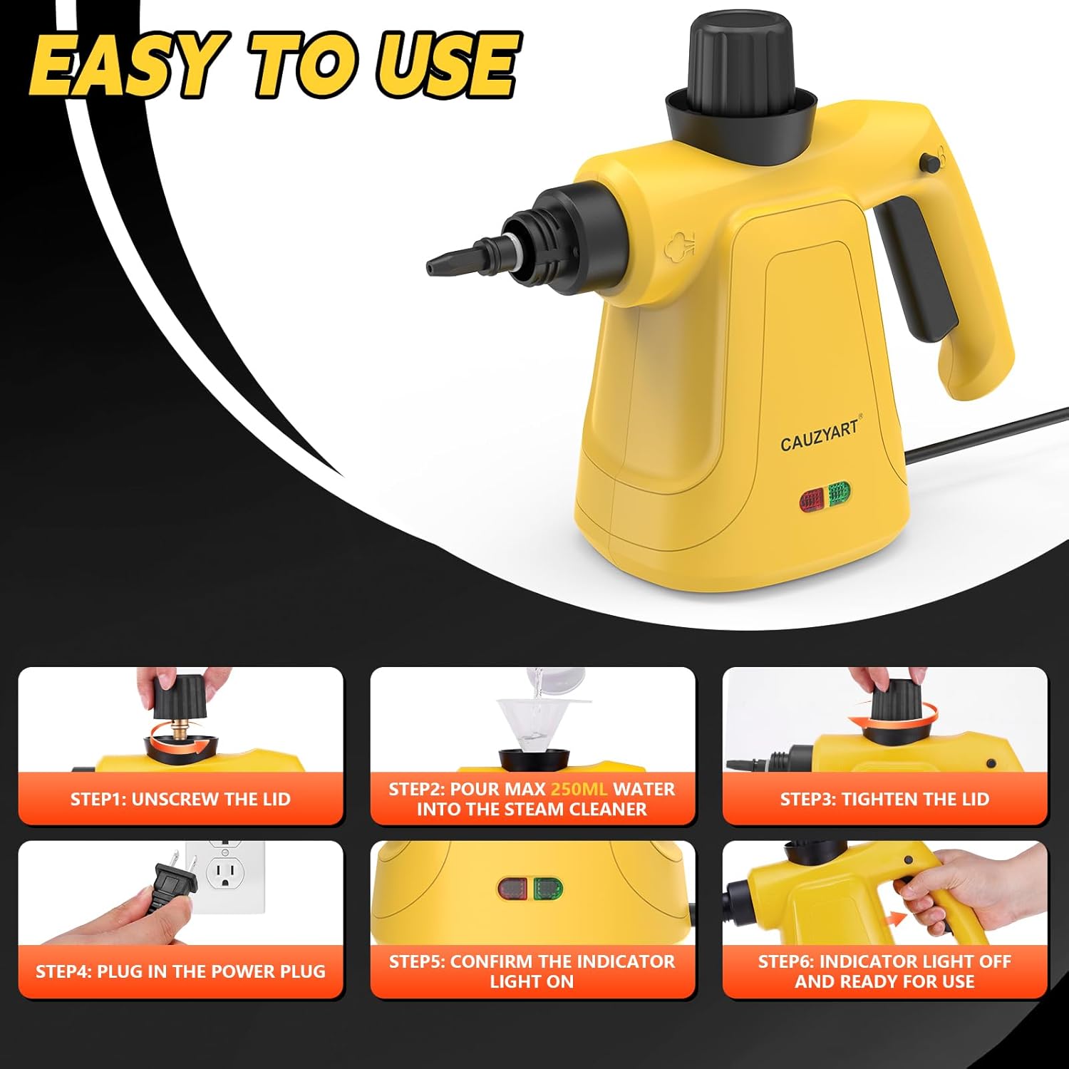 Steam Cleaner for Home, Cauzyart Pressurized HandHeld Steamer for Cleaning with 11pcs Accessories and Safety Lock, Multi-Purpose Steamer for Bathroom,Tile, Window and Car