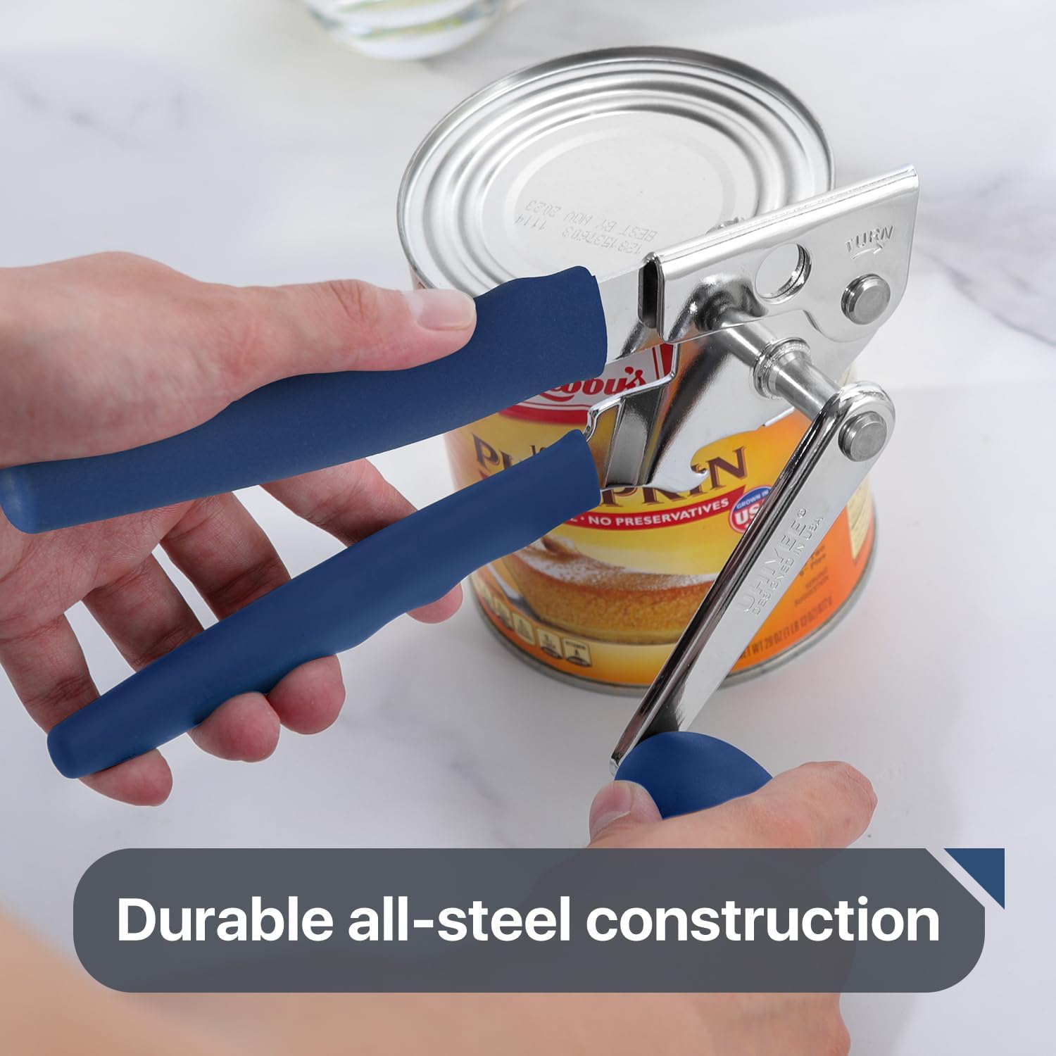 Commercial Can Opener, UHIYEE Hand Crank Can Opener Manual Heavy Duty with Comfortable Extra-long Handles, Oversized Knob, Large Handheld Can Open Easy for Big Cans, Blue