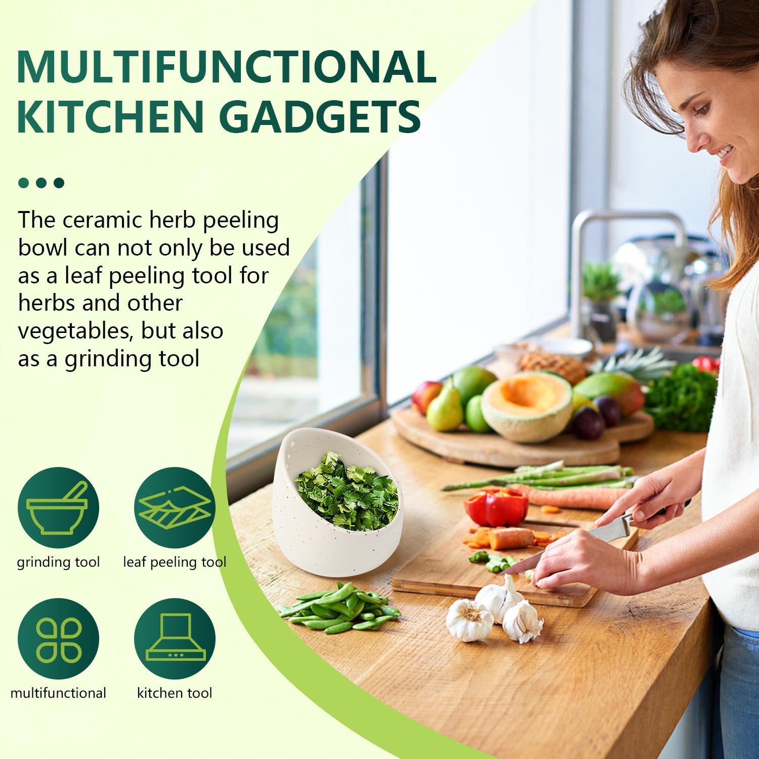 - 【Multifunctional Kitchen Gadget】The ceramic herb peeling bowl can not only be used as a tool for peeling leaves of vegetables such as herbs, but also as a grinding tool, which is a good helper to simplify cooking