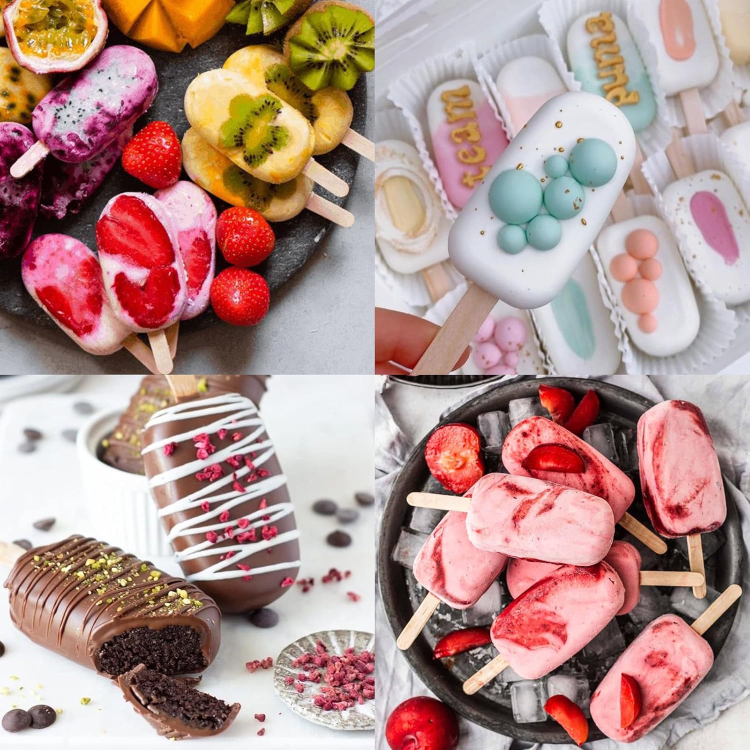 - EASE TO USE: You can use fruit juice, milk and other ingredients, insert the popsicle stick into the cake pop mixture, after they're fully set, carefully pop them out of the ice pop mold. Decorate with drizzled chocolate, edible glitter, sprinkles, icing shapes, in whatever flavors you like, they work well to make healthy popsicles