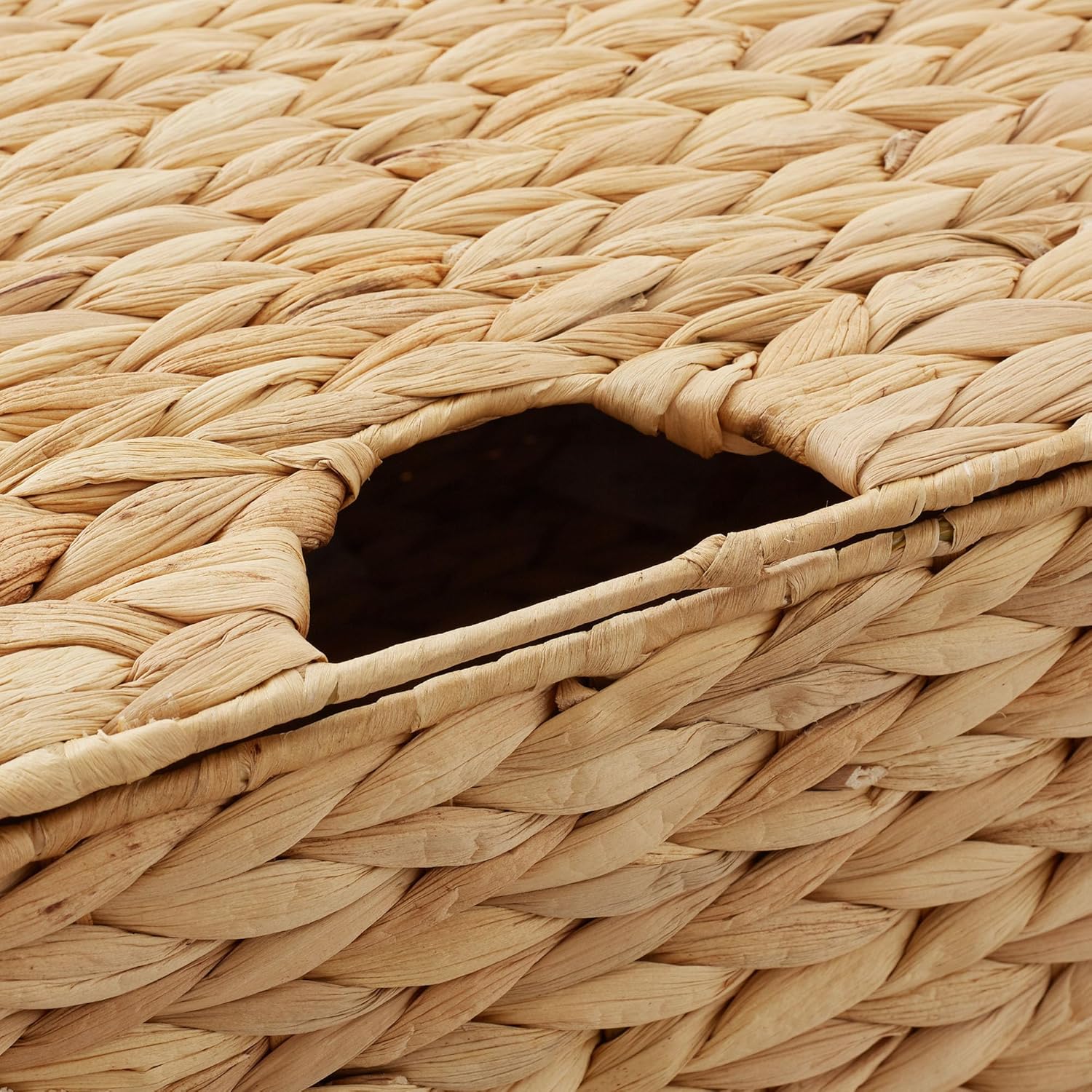 Casafield Set of 2 Water Hyacinth Rectangular Storage Baskets with Lids (Natural - Medium/Large) for Bedroom, Bathroom, Laundry, Home Office