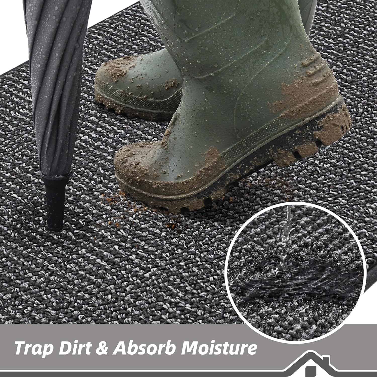 BEQHAUSE Dirt Trapper Door Mat 20" x 48", Non-Slip Washable Doormats Entrance Mat, Dirt Resistant and Absorbent Welcome Mat, Low Profile Floor Mats for Front Back Door and Entryway, Charcoal