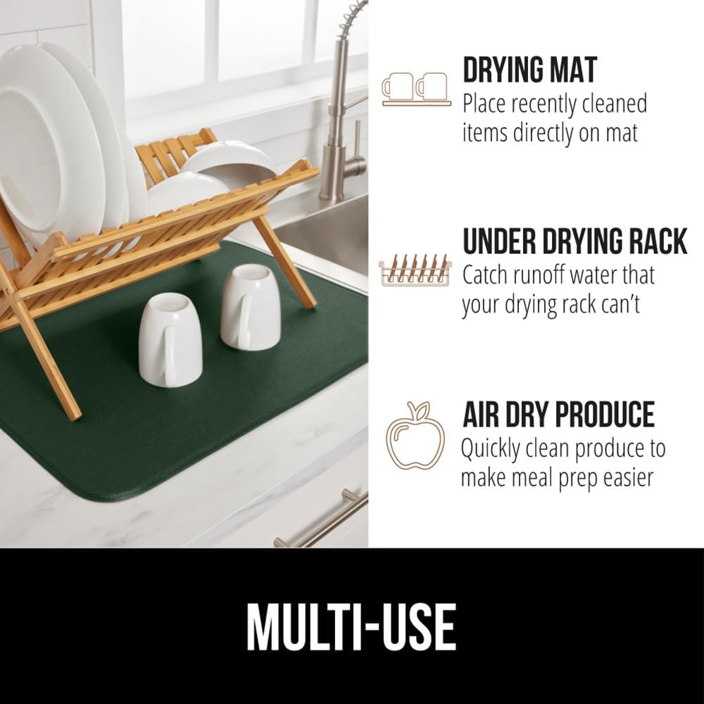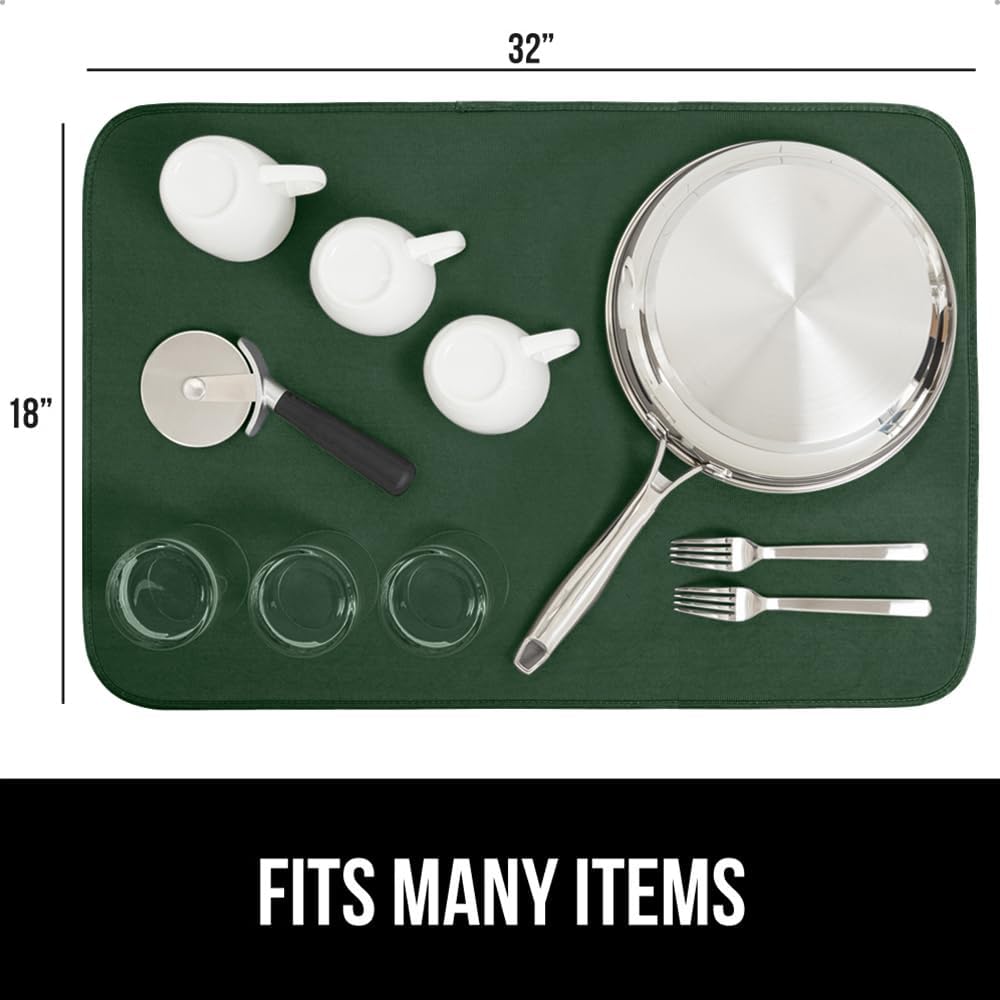 GORILLA GRIP Ultra Water Absorbent Microfiber Dish Drying Mat, 18x32, Quick Dry Thick Mesh, Slip Resistant Pad for Sink Dishes or Under Rack, Kitchen Counter Accessories, Machine Wash, Hunter Green