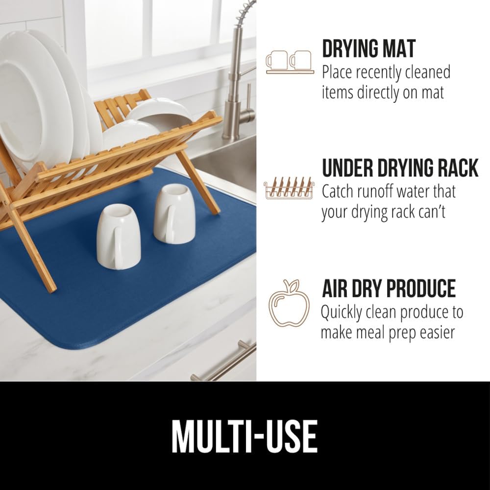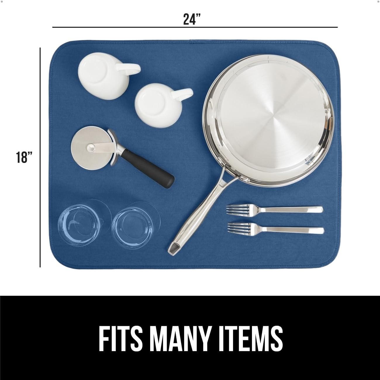 GORILLA GRIP Ultra Water Absorbent Microfiber Dish Drying Mat, 18x24, Quick Dry Thick Mesh, Slip Resistant Pad for Sink Dishes or Under Rack, Kitchen Counter Accessories, Machine Wash, 2 Pack Blue