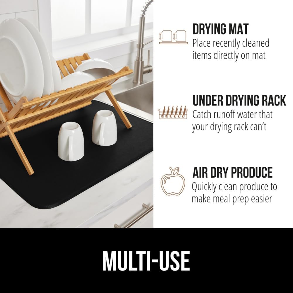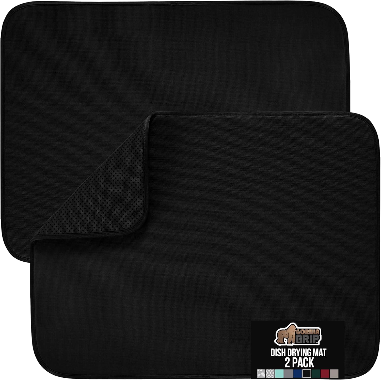 GORILLA GRIP Ultra Water Absorbent Microfiber Dish Drying Mat, 18x24, Quick Dry Thick Mesh, Slip Resistant Pad for Sink Dishes or Under Rack, Kitchen Counter Accessories, Machine Wash, 2 Pack Black
