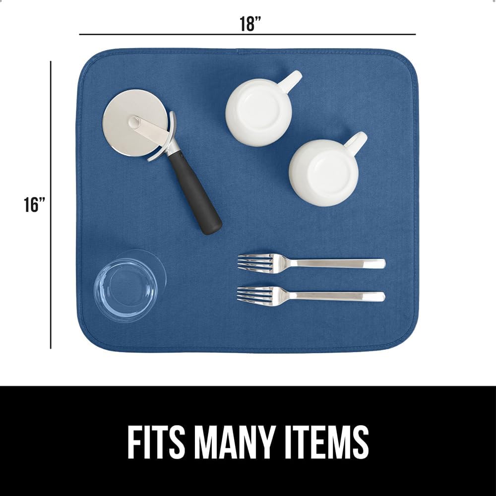 GORILLA GRIP Ultra Water Absorbent Microfiber Dish Drying Mat, Quick Dry Thick Mesh, Slip Resistant Pad for Sink Dishes or Under Rack, Kitchen Counter Accessories, 16x18, Machine Wash, 2 Pack Blue