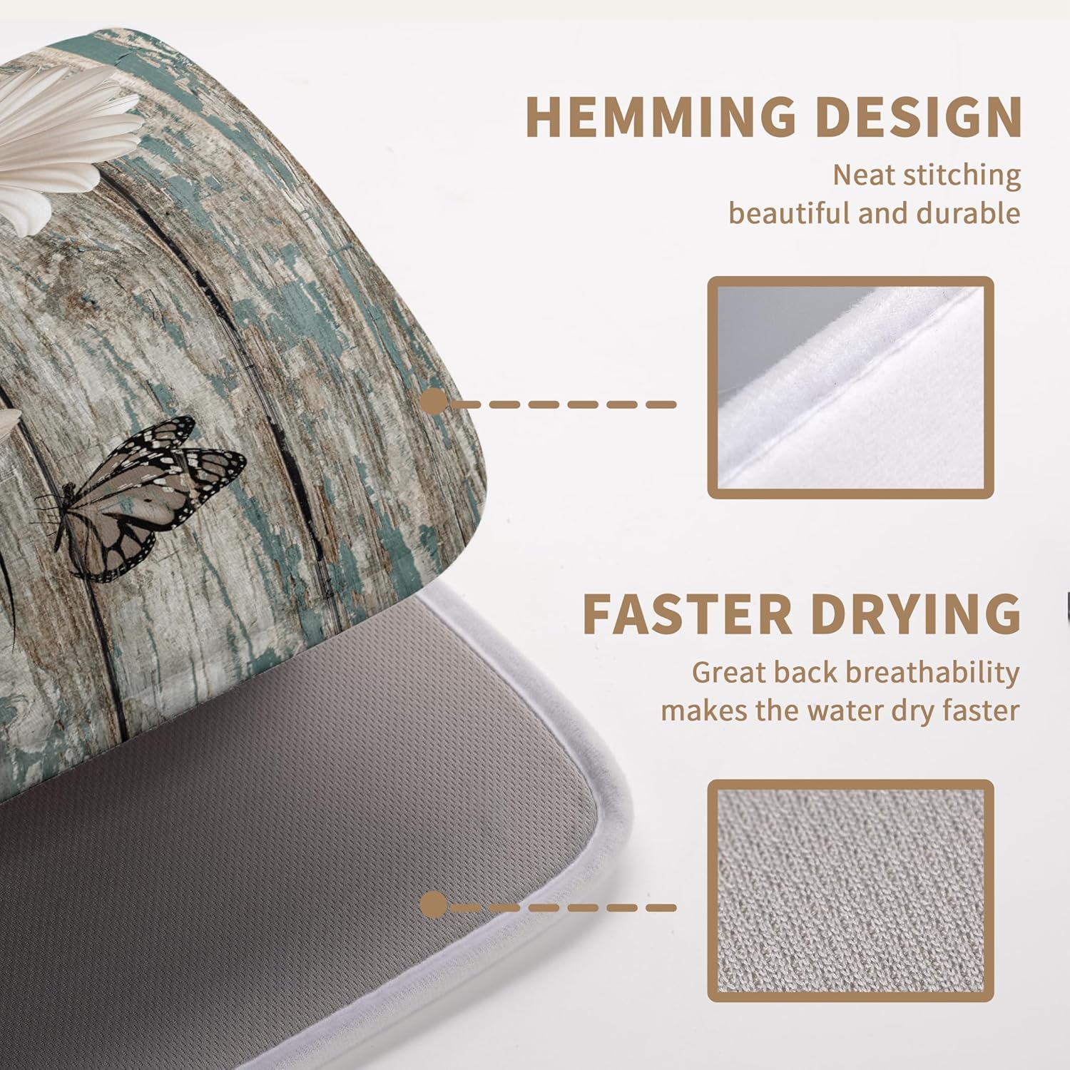 - [Quick Absorption]: Made of absorbent material,our Rustic Daisy Vintage Sunflower summer farmhouse dish dryer mat for kitchen absorbs water stains quickly, keeping your table top dry and clean, avoiding water stains and leaks, providing you with a pleasant and dry dining or working experience.