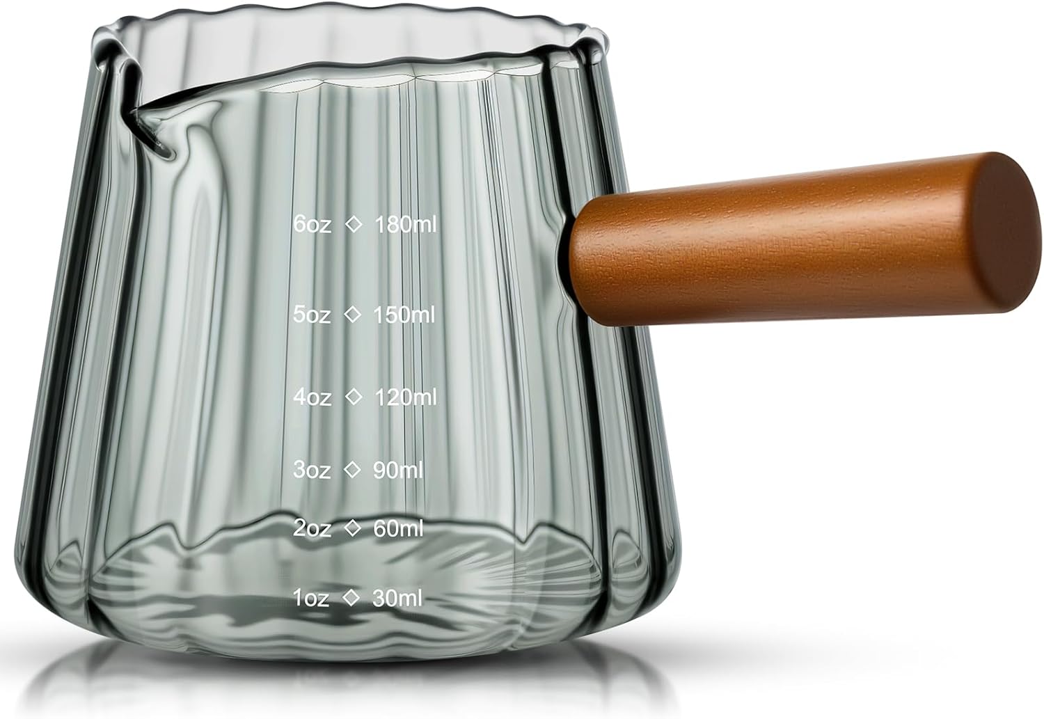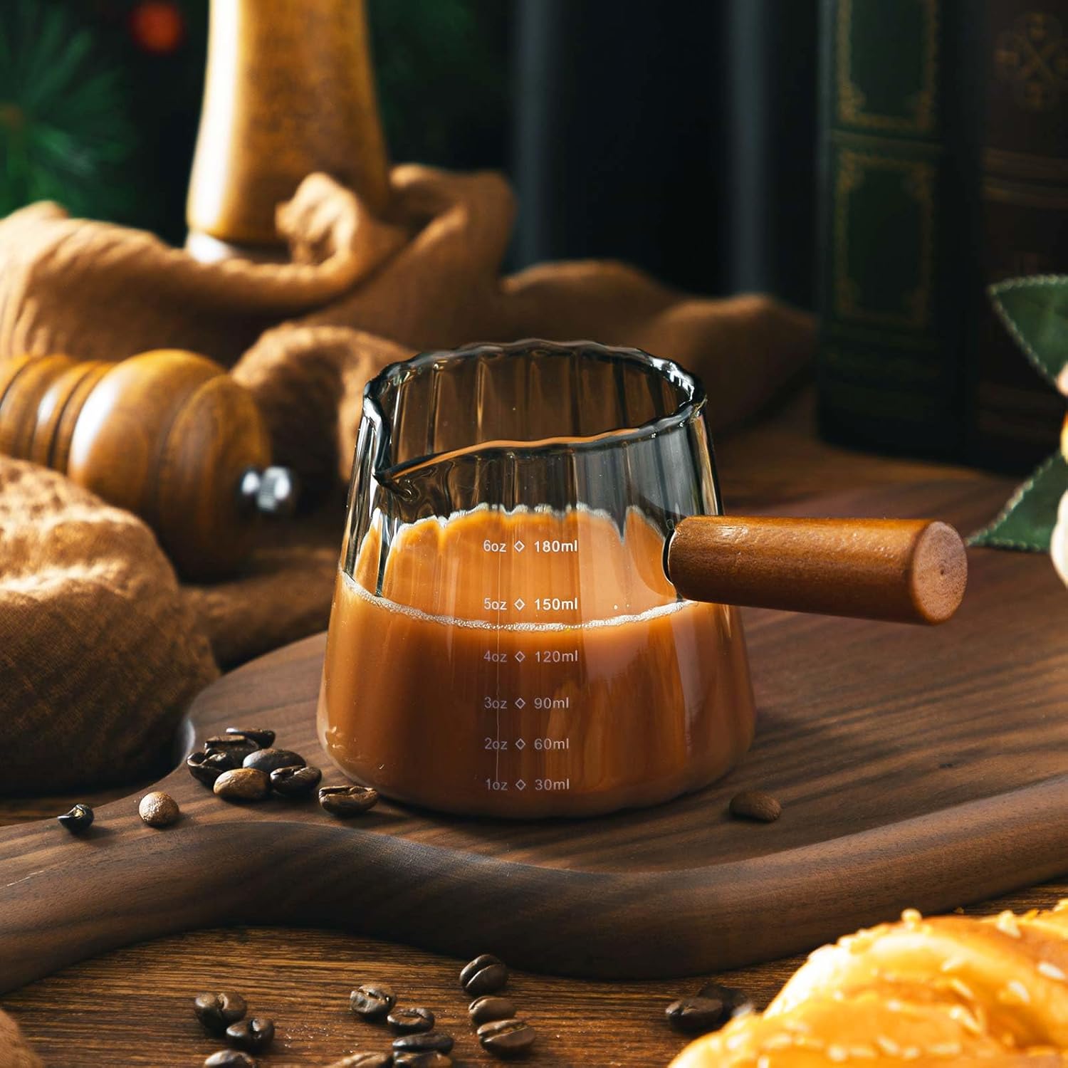 - Simplicity and Style: experience the blend of modern design and functionality epitomized in the single spouts espresso cup; The cup body, crafted from borosilicate glass, beautifully complements the stylish wooden handle; This cup will not only fulfill your espresso cravings but also enhance your kitchen ambiance