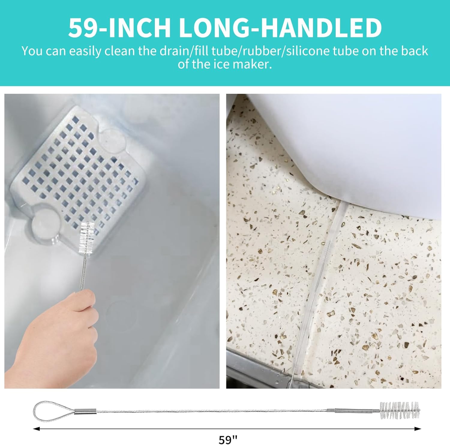 - Deep Cleaning: Our 59-inch extra long pipe cleaning brush can easily clean the ice maker's drain/fill/rubber/silicone tube, removing hard-to-reach dirt thoroughly
