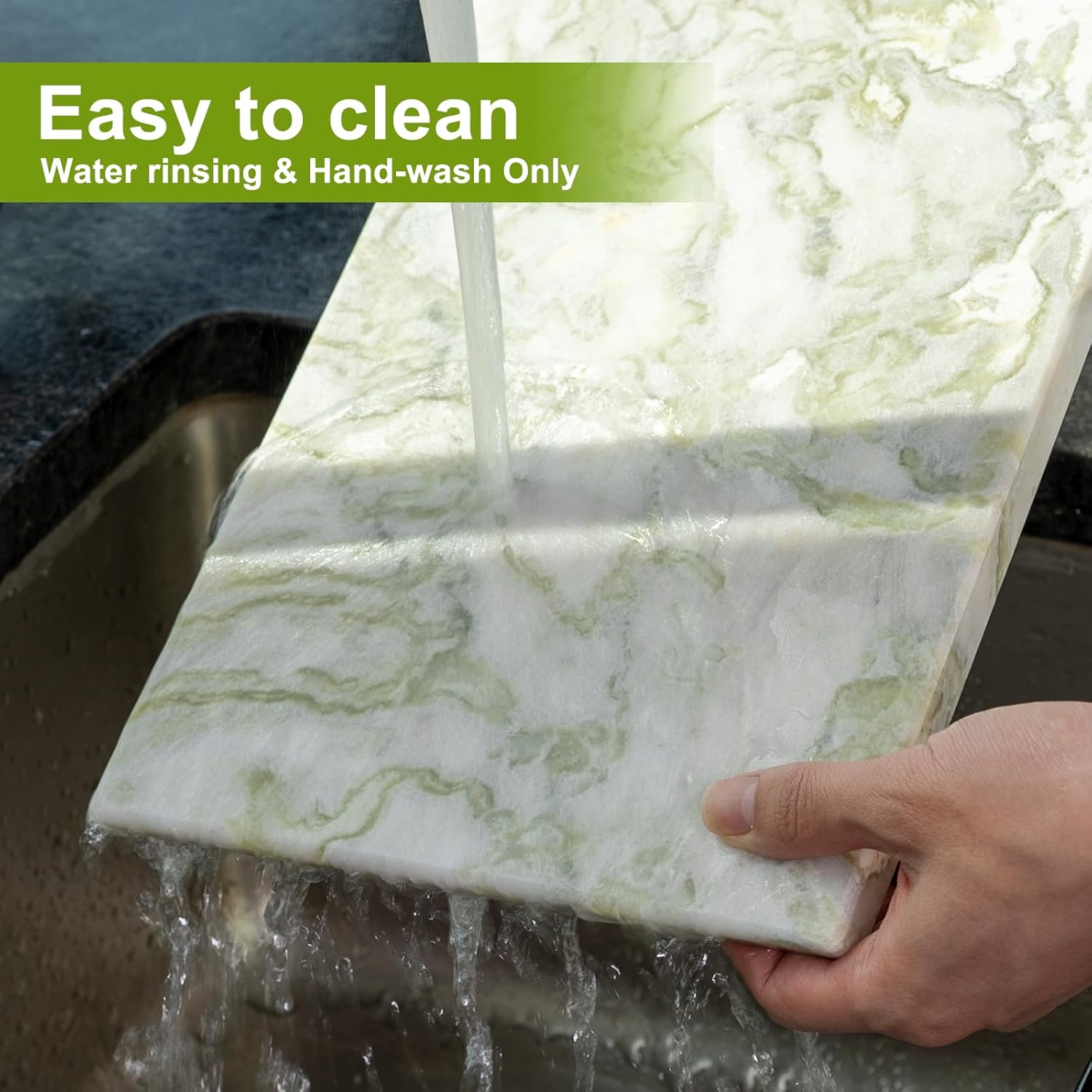 - Durable & Knife-Friendly Surface — The smooth marble surface resists scratches, stains, and moisture. Its natural hardness is gentle on knives while providing a stable cutting surface that enhances food preparation.