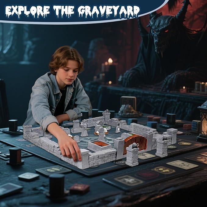 - Modular system, unlimited creativity: Contains 38 combinations and various terrain accessories such as walls, miniature tombstones, crosses, miniature coffins, etc. Players can freely combine these components to create a unique miniature graveyard scene. This highly customizable possibility brings a new experience to the tabletop role-playing scene.