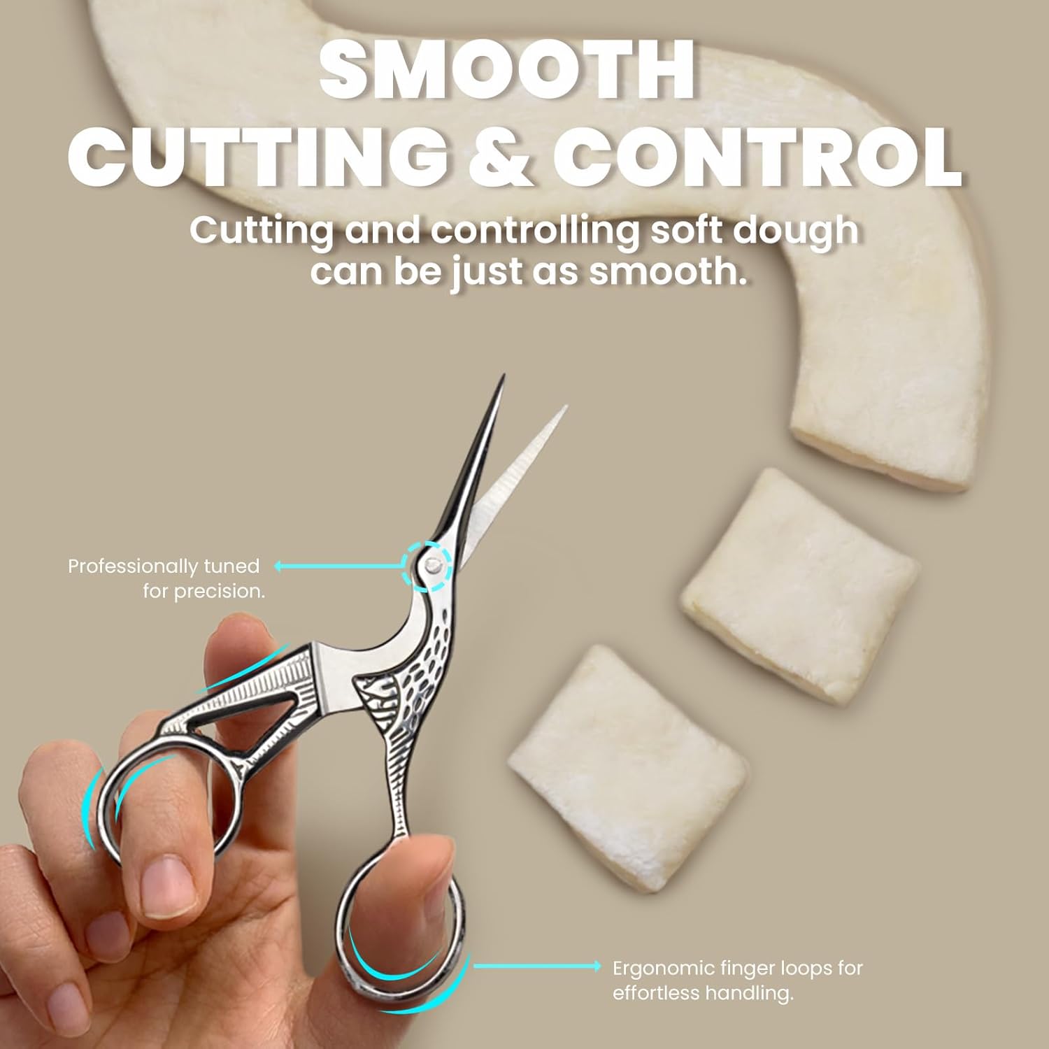 - Scissors Designed for Sourdough Scoring: This scissor has a elegant appearance, like a crane. The overall size is 4.6 inches long, its top is very sharp and can be used for delicate and intricate pattern carving, like Christmas trees, feathers, etc. smoothly and effortlessly