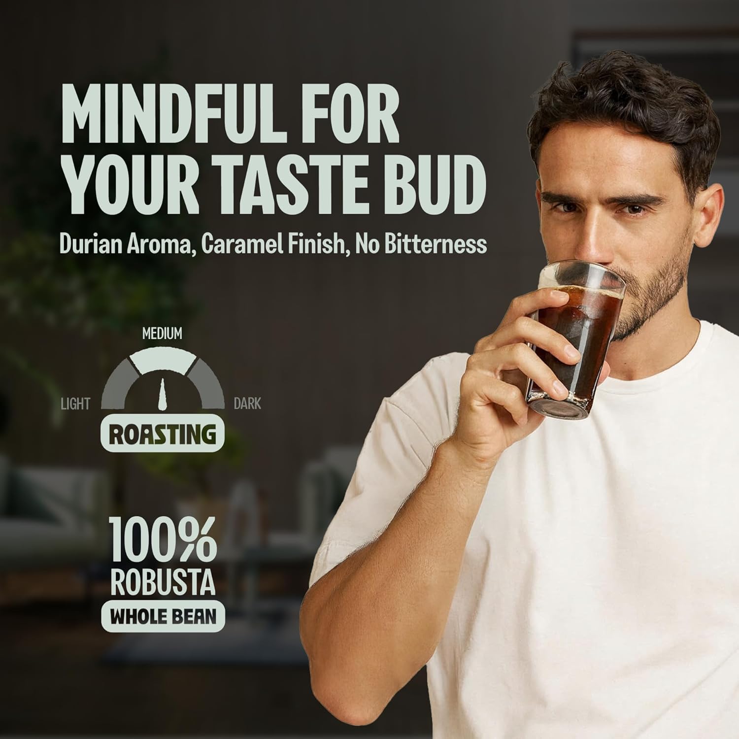 - Exotic Flavor Notes : Roasted in small batches, Fine Robusta guarantees freshness, authenticity, and bold aroma. Indulge in a unique natural taste profile with hints of durian, honey, and caramel, perfectly balanced for a smooth yet vibrant finish.