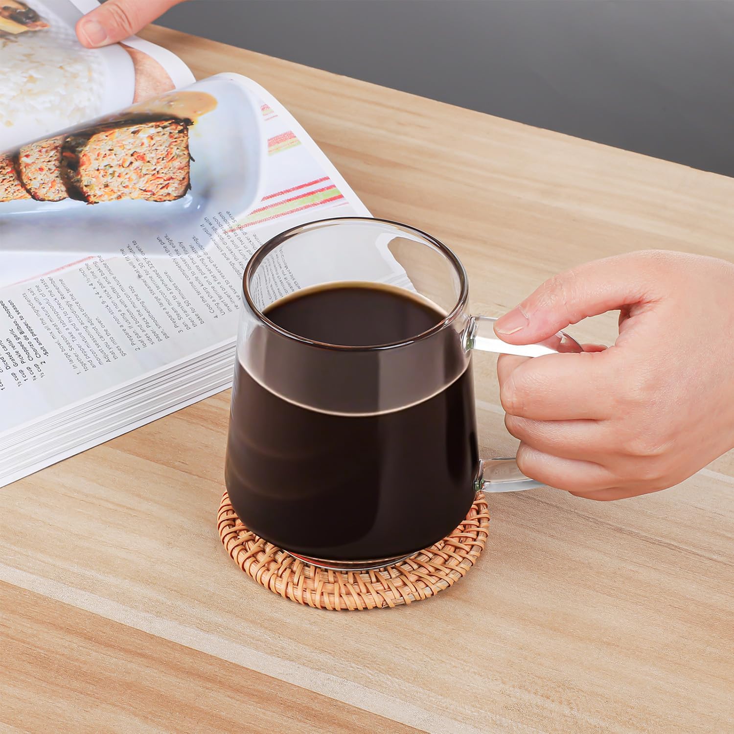 - Borosilicate Glass Coffee Cups: Crafted from 100% borosilicate glass, these glass coffee cups are designed for daily use, offering durability and a sleek appearance. The material ensures even temperature distribution