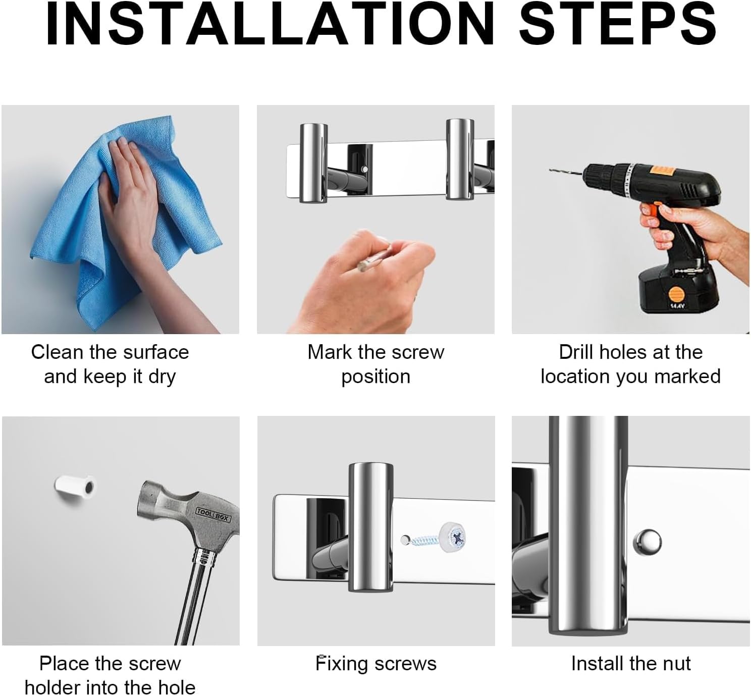 - Versatile Use: This Polished Chrome Row Hook Coat Rack for various locations, including bathrooms, kitchens, living rooms, entrances, and offices. Use it to hang towels, kitchenware, coats, hats, jackets, wallets, keys, and more, adding functionality and organization to your space.